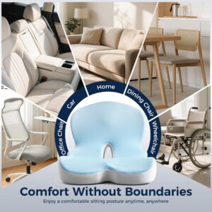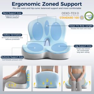 Seat Cushion, Office Chair Cushions for Tailbone Relief, Seat Cushions for Office Chair with L-Shaped Ergonomic Design, Memory Foam Chair Cushion for Long Sitting Office Worker(Blue Grey)