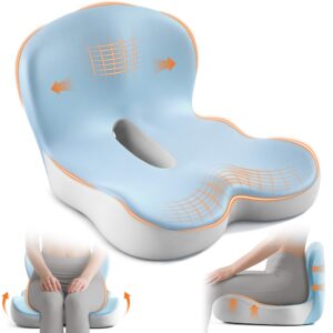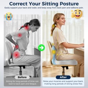 Seat Cushion, Office Chair Cushions for Tailbone Relief, Seat Cushions for Office Chair with L-Shaped Ergonomic Design, Memory Foam Chair Cushion for Long Sitting Office Worker(Blue Grey)