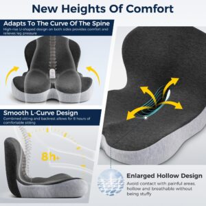 Seat Cushion, Office Chair Seat Cushions for Office Chair with L-Shaped Ergonomic Design, Memory Foam Chair Cushion for Long Sitting Office Worker(Black Gray)