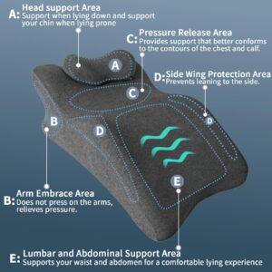 Ergonomic Wedge Prone Pillow,Multi-Functional Bed Pillow,Reading Pillow,Ideal for Bed Breaks,Massage,Reading,Back Support,Sleeping,Anti Snoring, and Leg Pain Relief