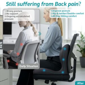 Original price was: $66.00.$56.00Current price is: $56.00.Memory Foam Seat Cushion,Office Chair Cushion with Lumbar Support for Back Pressure Relief, Car Seat Cushion with Adjustable Strap,Sciatica Pad Cushions for Car,Truck, Desk,Gaming Chair