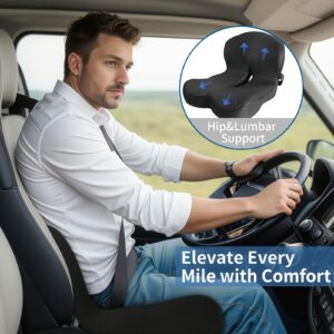 Original price was: $66.00.$56.00Current price is: $56.00.Memory Foam Seat Cushion,Office Chair Cushion with Lumbar Support for Back Pressure Relief, Car Seat Cushion with Adjustable Strap,Sciatica Pad Cushions for Car,Truck (Black+Mesh Cloth)