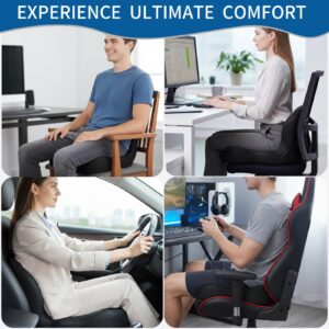 Memory Foam Seat Cushion,Office Chair Cushion with Lumbar Support for Back Pressure Relief, Car Seat Cushion with Adjustable Strap,Sciatica Pad Cushions for Car,Truck (Black+Mesh Cloth)
