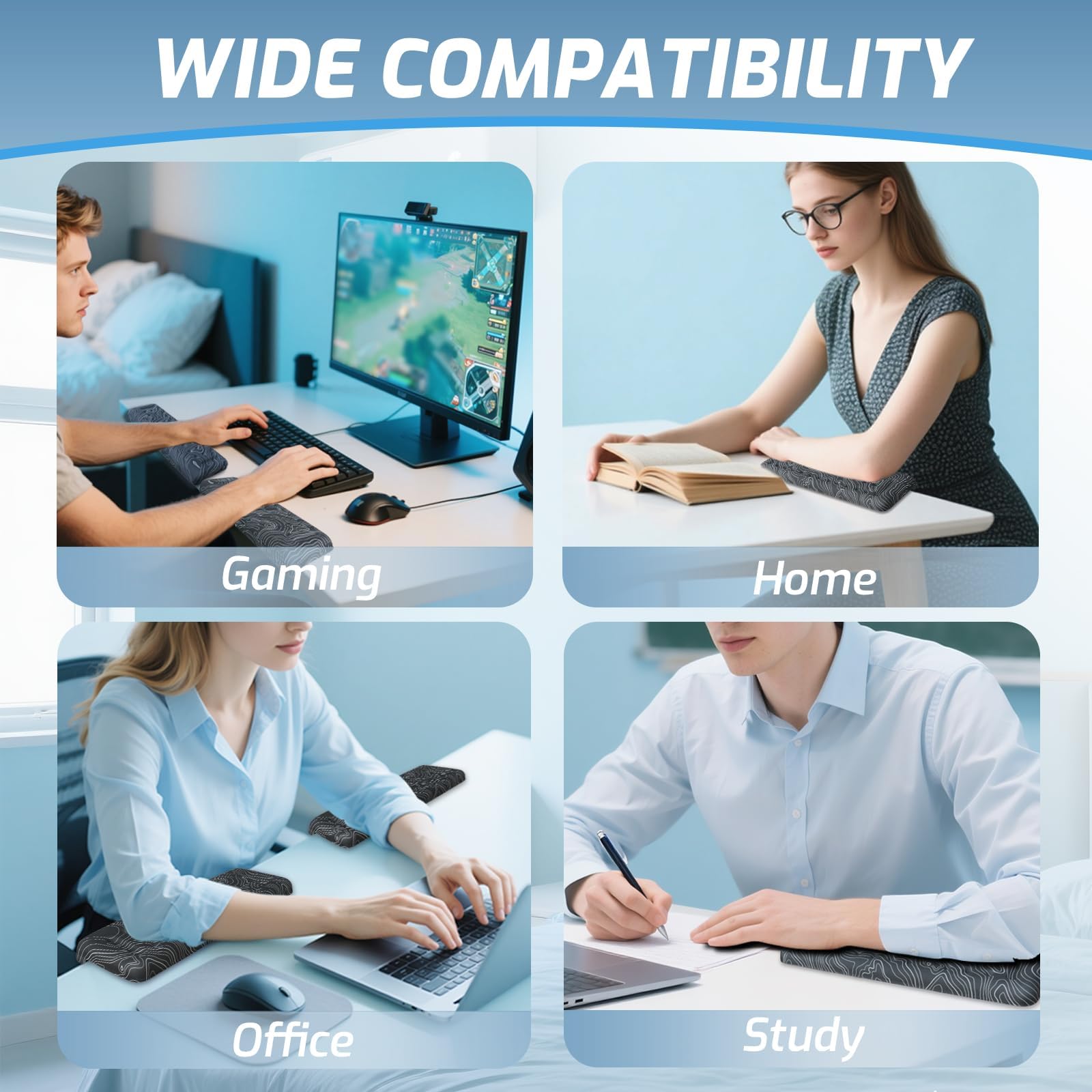 • Dual-Pad Comfort: Featuring two adjustable memory foam elbow pads (11.81” x 3.94” each), you can easily customize the spacing to fit any desk setup. Whether you prefer a straight or L-shaped configuration, this product adapts effortlessly to your workspace,ensuring optimal comfort and support.