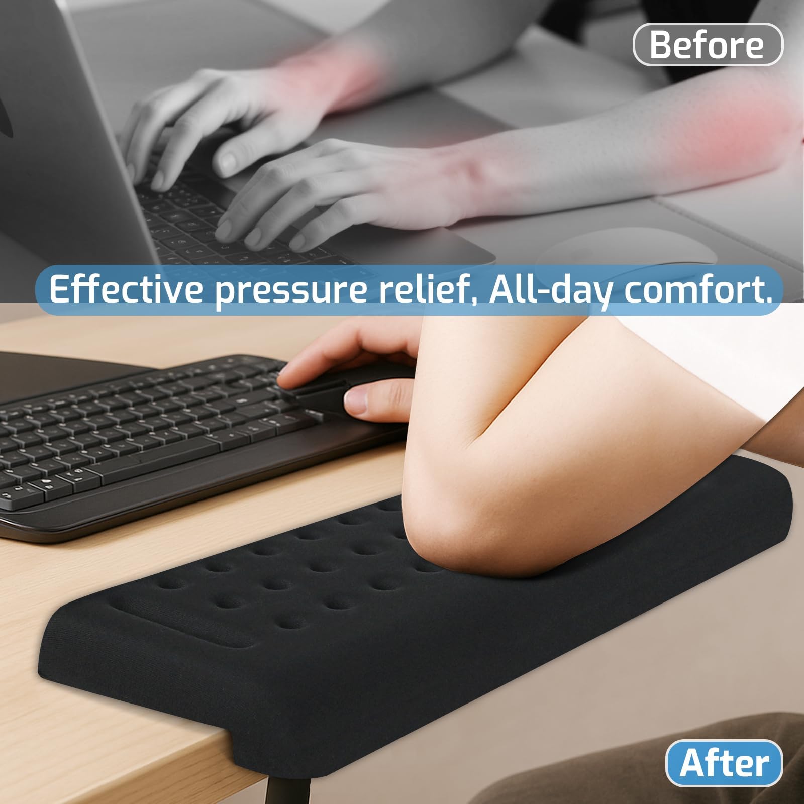 - Dual-Pad Comfort: Featuring two adjustable memory foam elbow pads (11.81” x 3.94” each), you can easily customize the spacing to fit any desk setup. Whether you prefer a straight or L-shaped configuration, this product adapts effortlessly to your workspace,ensuring optimal comfort and support