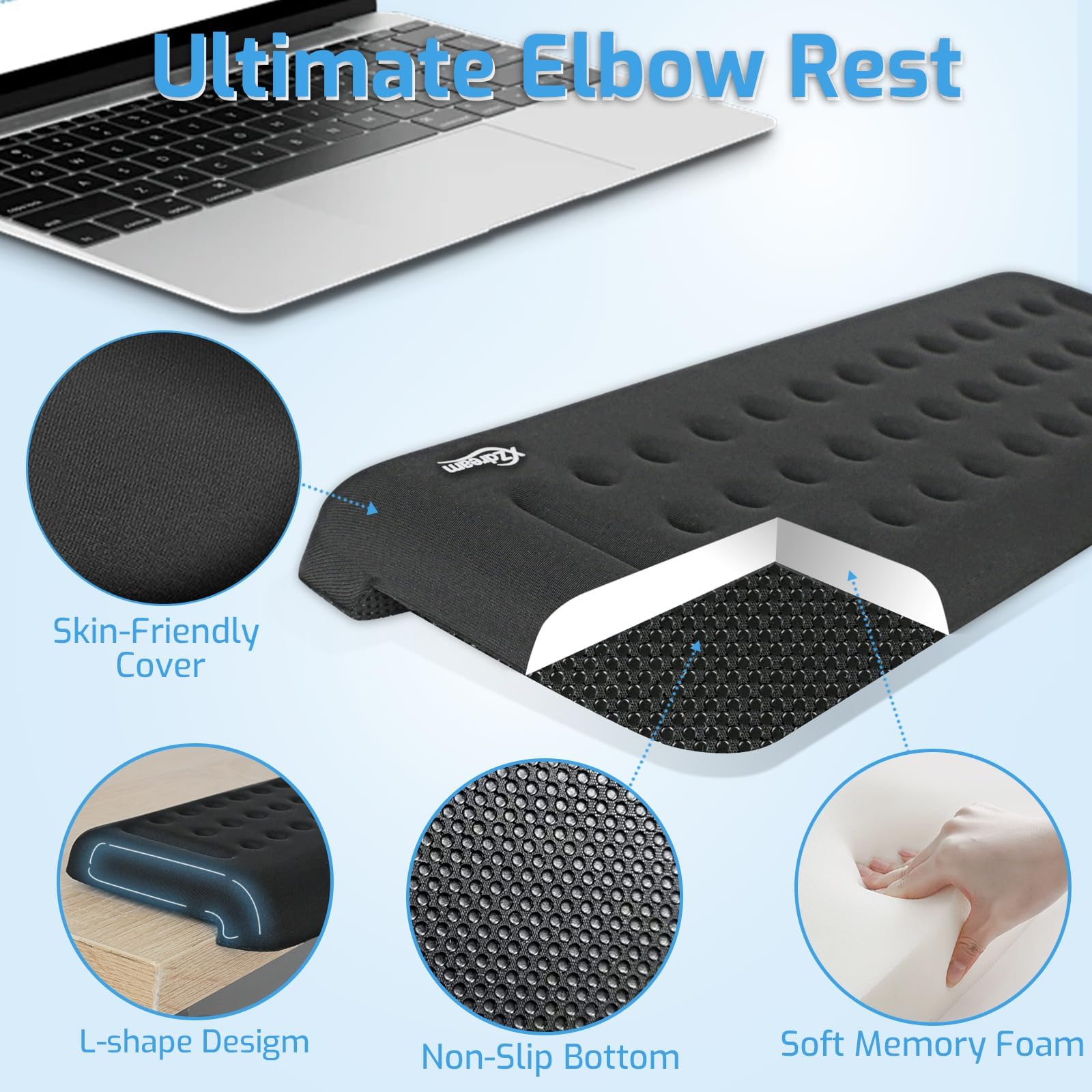 • Dual-Pad Comfort: Featuring two adjustable memory foam elbow pads (11.81” x 3.94” each), you can easily customize the spacing to fit any desk setup. Whether you prefer a straight or L-shaped configuration, this product adapts effortlessly to your workspace,ensuring optimal comfort and support