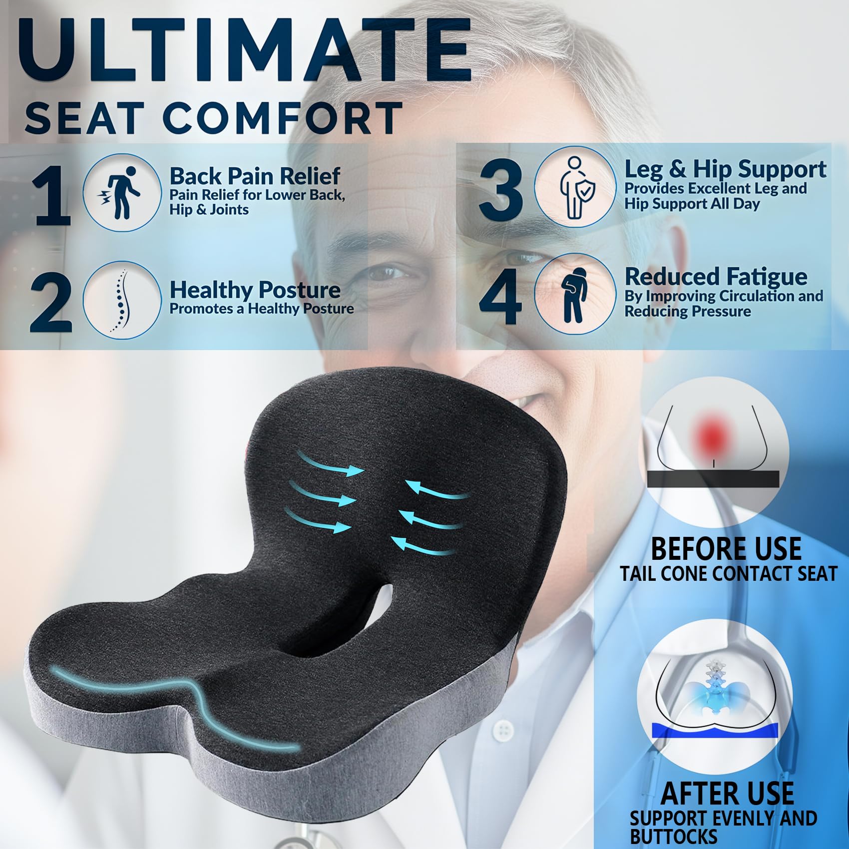 • Versatile for Any Seat: Use it on office chairs, car seats, truck seats, wheelchairs, or at home. Ideal for drivers, office workers, students, and anyone who sits for extended periods.