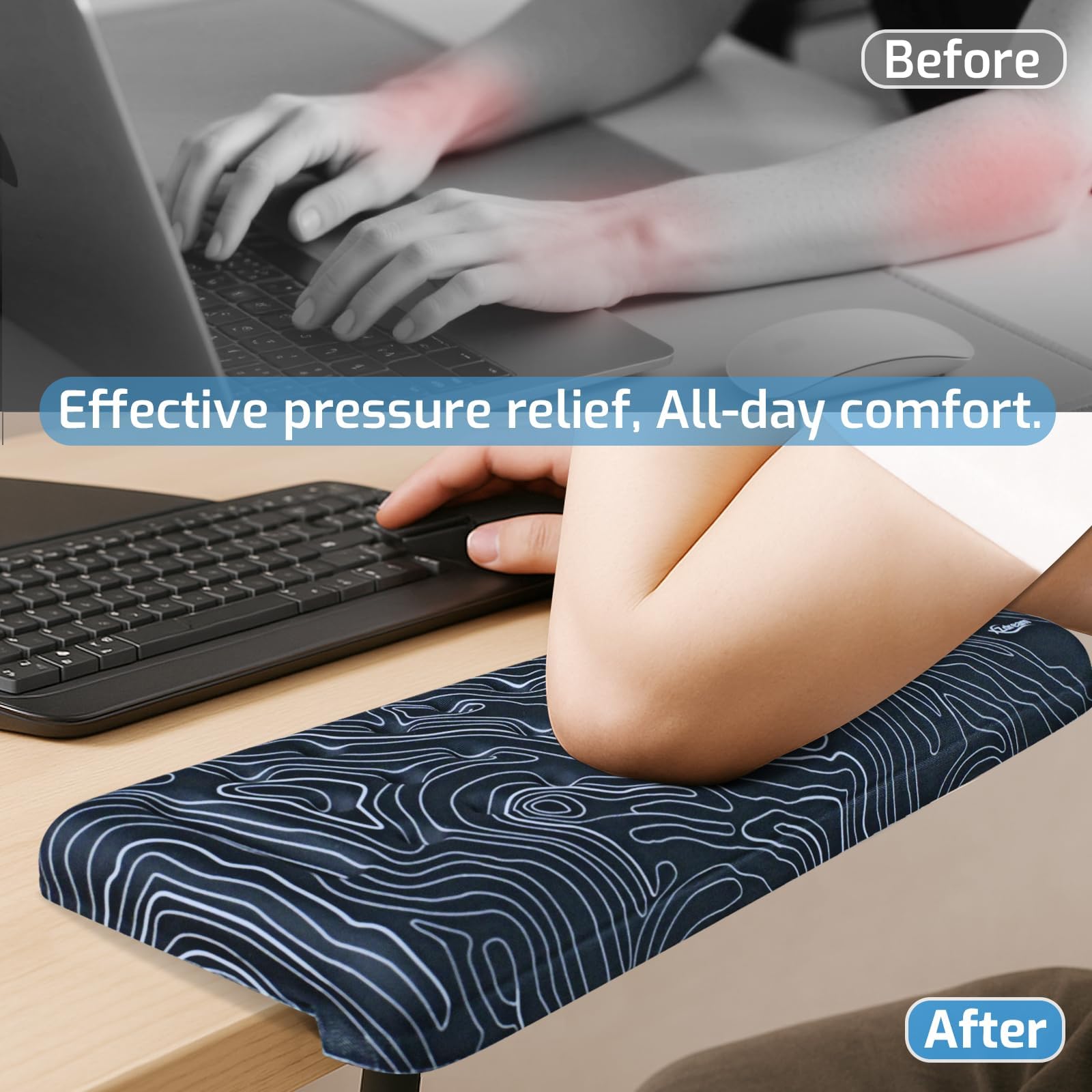 • Dual-Pad Comfort: Featuring two adjustable memory foam elbow pads (11.81” x 3.94” each), you can easily customize the spacing to fit any desk setup. Whether you prefer a straight or L-shaped configuration, this product adapts effortlessly to your workspace,ensuring optimal comfort and support.