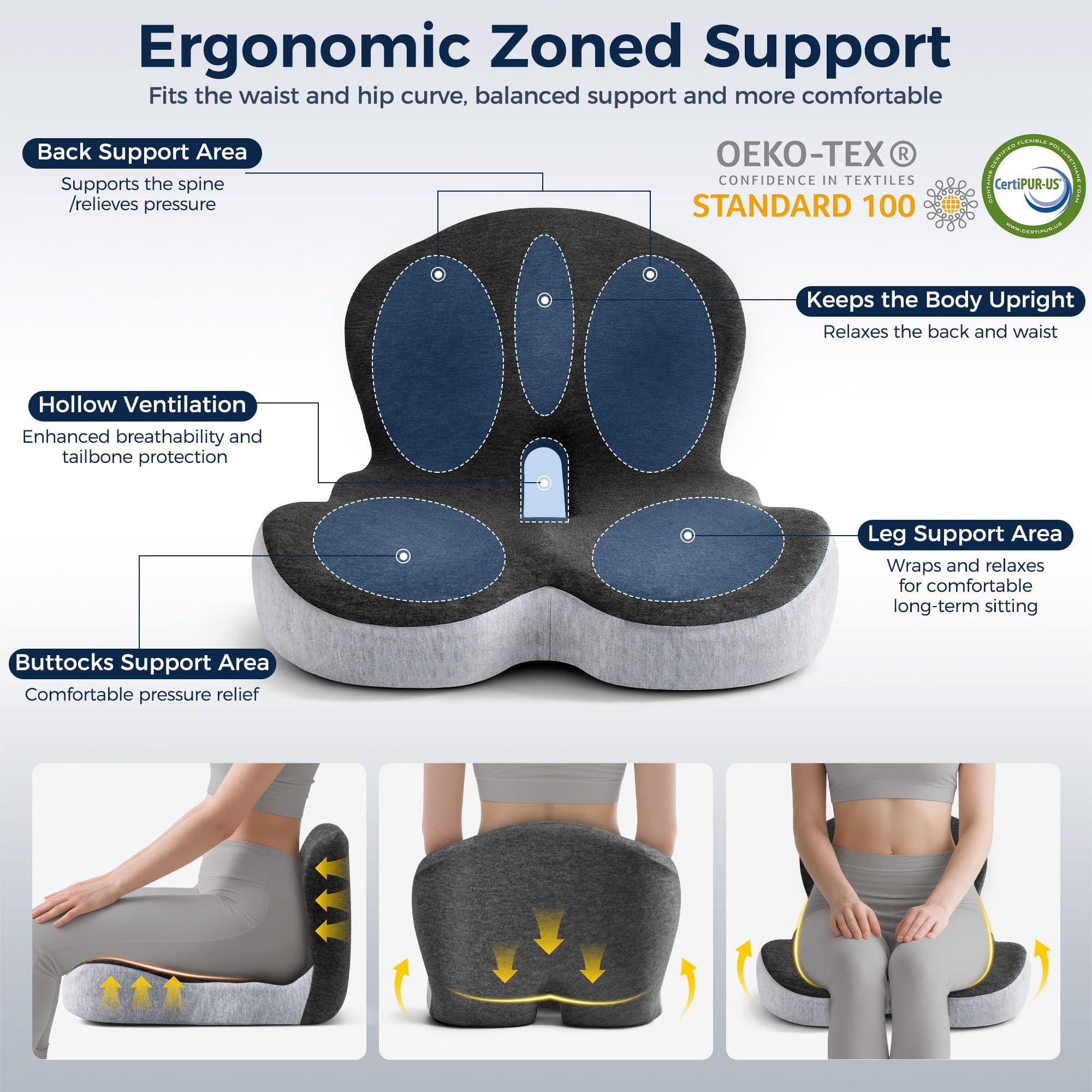 • 【Non-Slip & Breathable】:The bottom of this seat cushion for chair features anti-slip dots to keep it securely in place. Its hollow coccyx design promotes airflow and prevents heat buildup, making it one of the most comfortable seat cushions for office chairs to stay cool during long hours.
