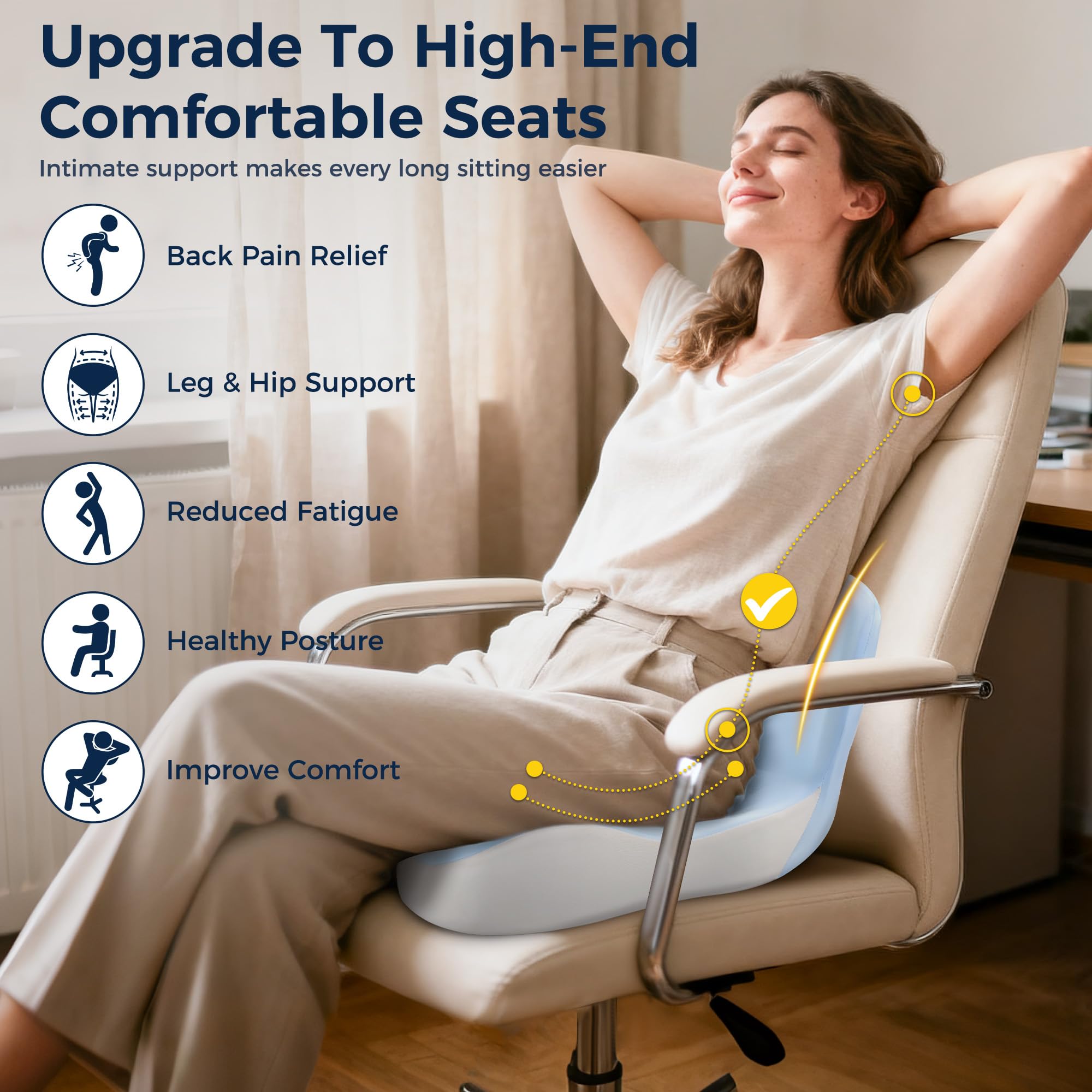• 【Premium High-Density Memory Foam】:Made with slow-rebound, temperature-sensitive memory foam that adapts to your body, this desk chair cushion offers the ideal balance of softness and support. Unlike ordinary chair cushions, it resists sagging or flattening, so you stay comfortable whether working, driving, or traveling.