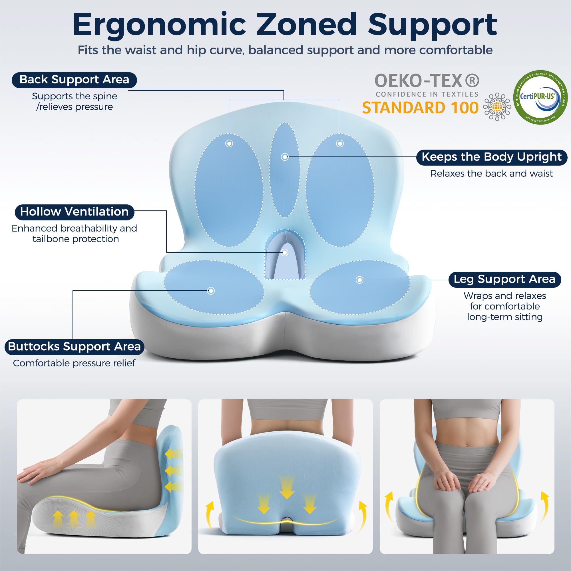 • 【Non-Slip & Breathable】:The bottom of this seat cushion for chair features anti-slip dots to keep it securely in place. Its hollow coccyx design promotes airflow and prevents heat buildup, making it one of the most comfortable seat cushions for office chairs to stay cool during long hours.