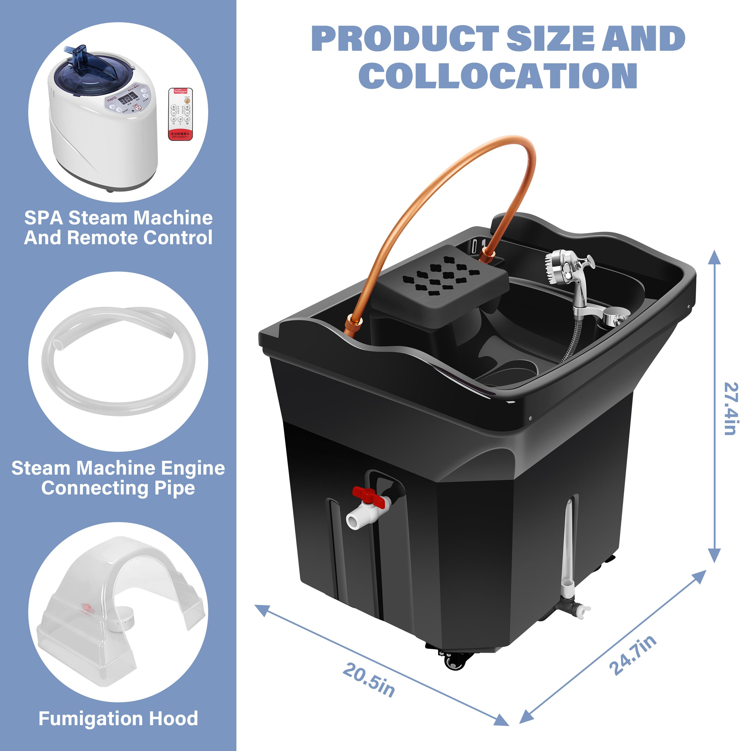 Head Spa Equipment with 60L Water Storage Tank, Warm Steam & Hair Wash Sink for Scalp Care and Relaxation (Head Spa Equipment-Black)