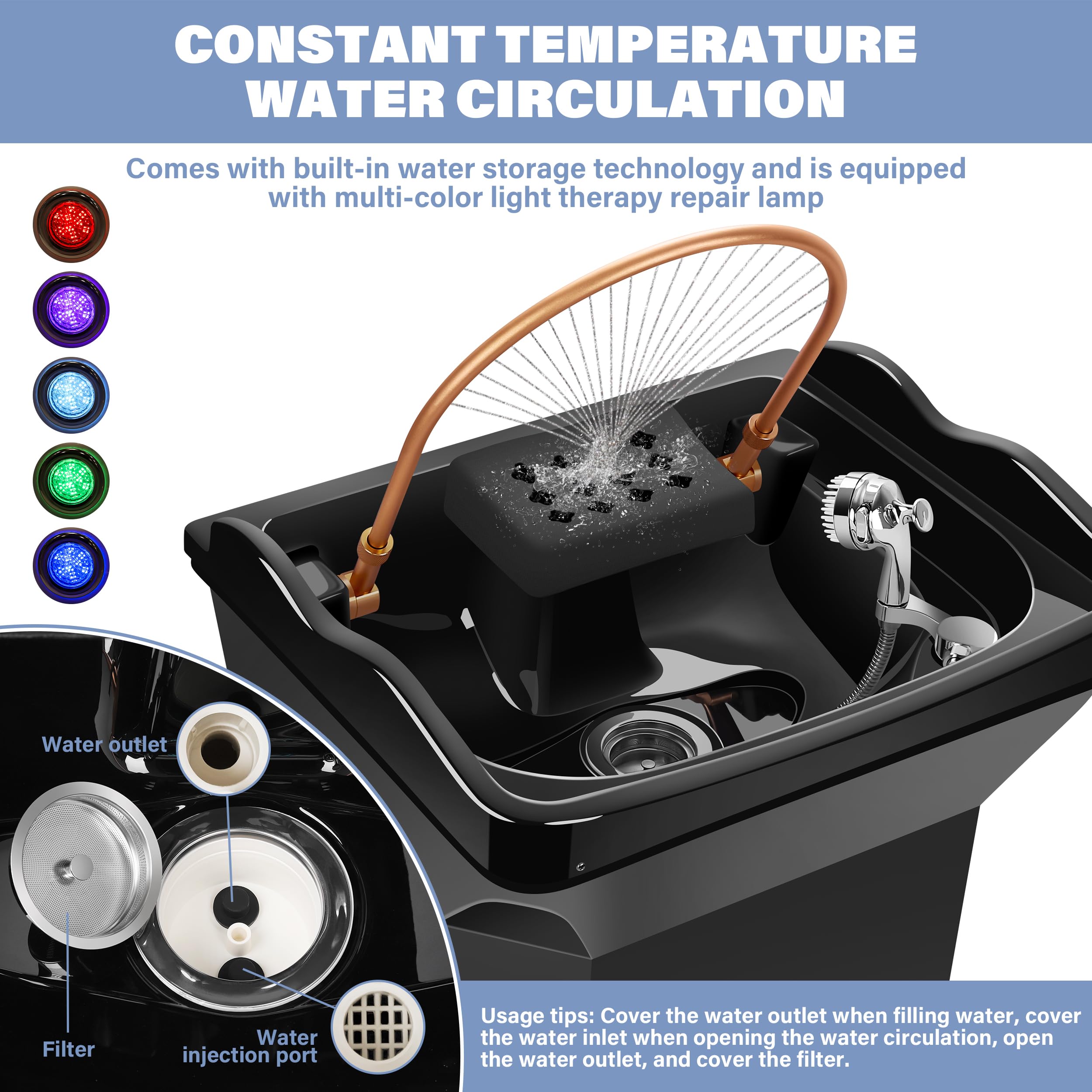 - Large Water Tank: This self-contained head spa system features a generously sized 60L water reservoir,eliminating the need for external plumbing connections.