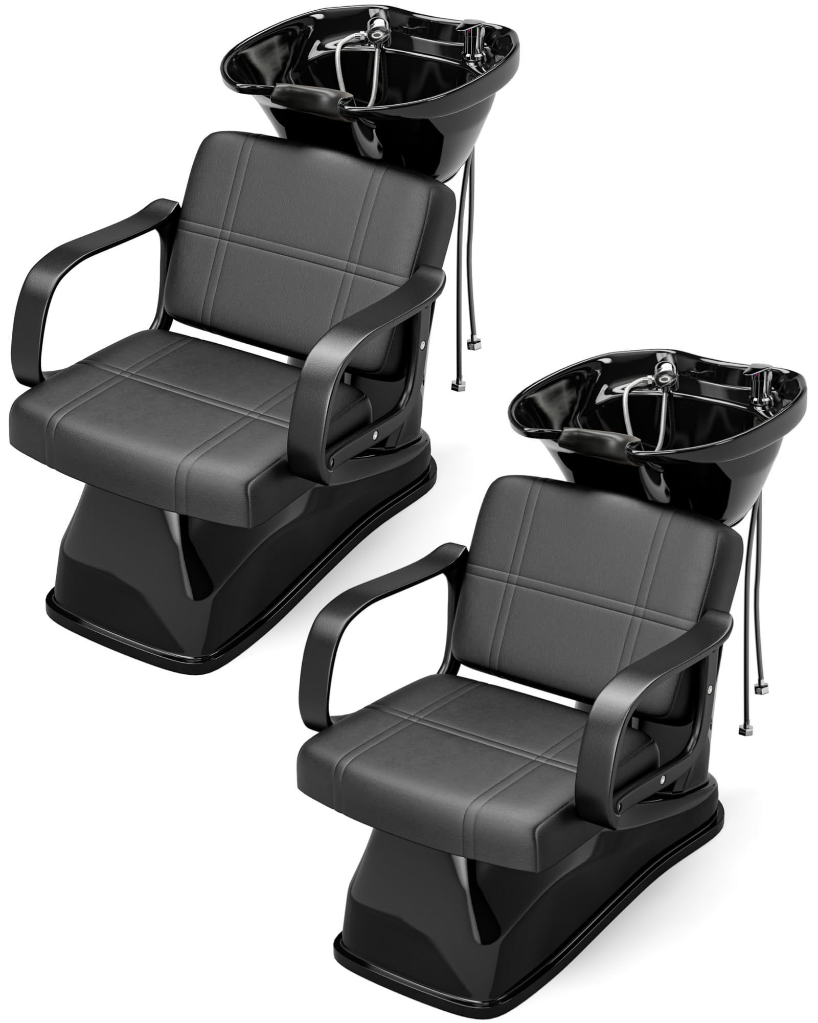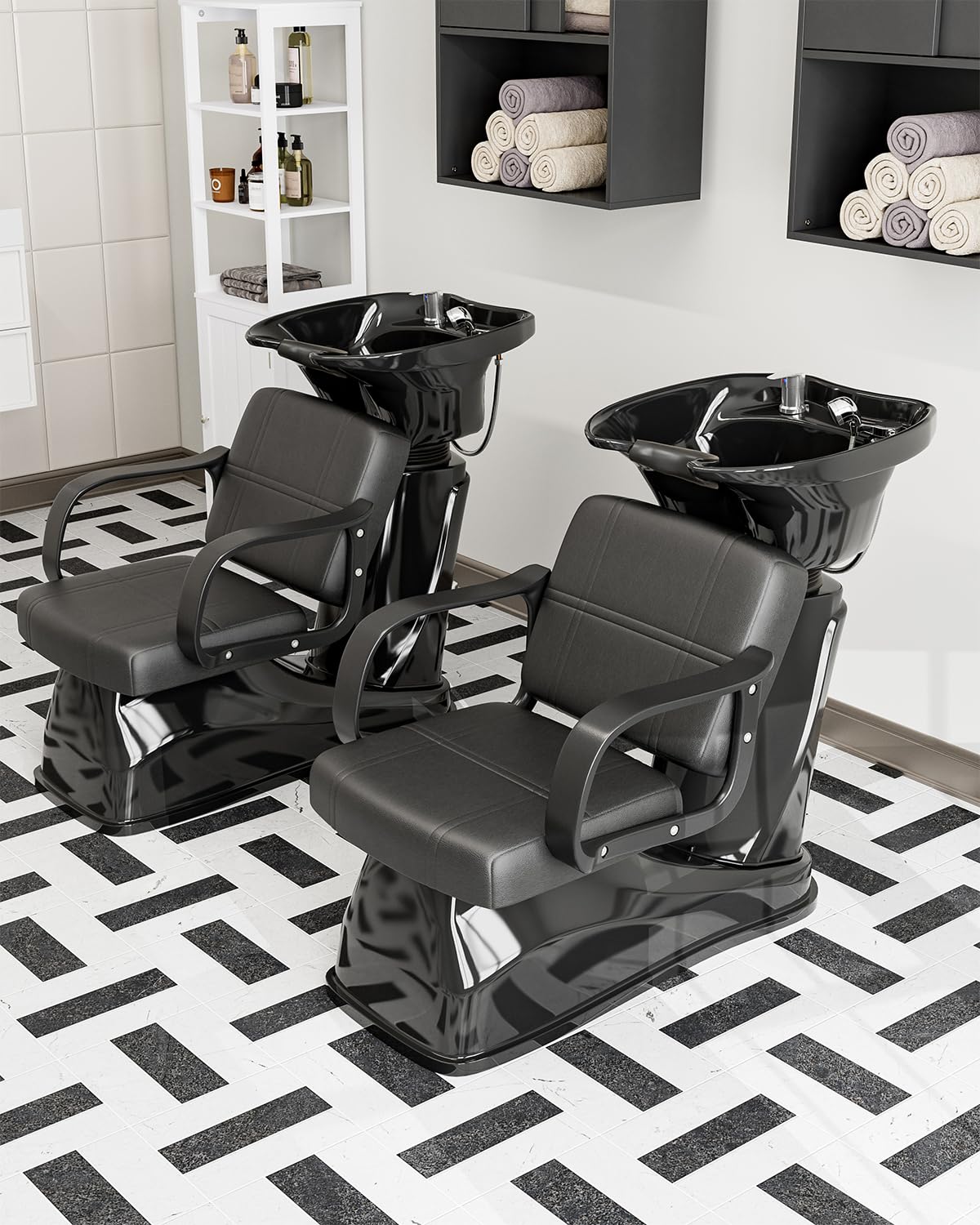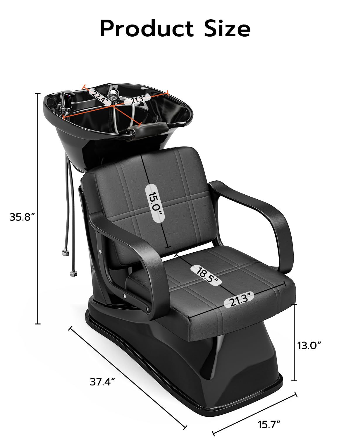- 【Good Choice for Barbershop】A perfect combination of shampoo backwash station includes shampoo bowl and shampoo chair. The height 35.8” suitable for most hair stylists, you can wash hair for your clients in the salon shampoo bowl. Large shampoo bowl reduces the pressure on the neck when the hair is being washed.