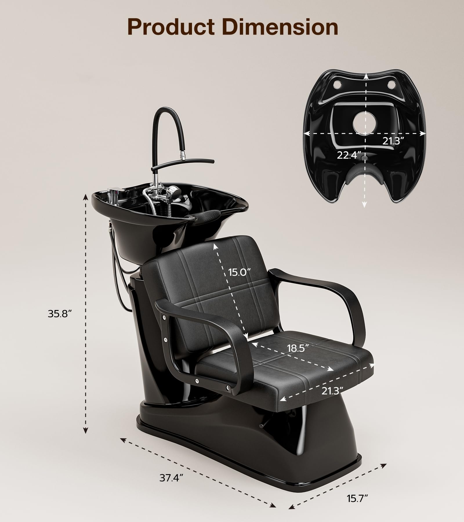 - 【Good Choice for Barbershops】A good combination of shampoo backwash station includes shampoo bowl and shampoo chair. The 35.8” height suitable for most hair stylists; Large shampoo bowl reduces the pressure on the neck when the hair is being washed; Equipped with outstanding waterproof capabilities, both the leather and the bowl are easy to maintain, waterproof, and corrosion-resistant, needing only a simple wipe-down to keep clean