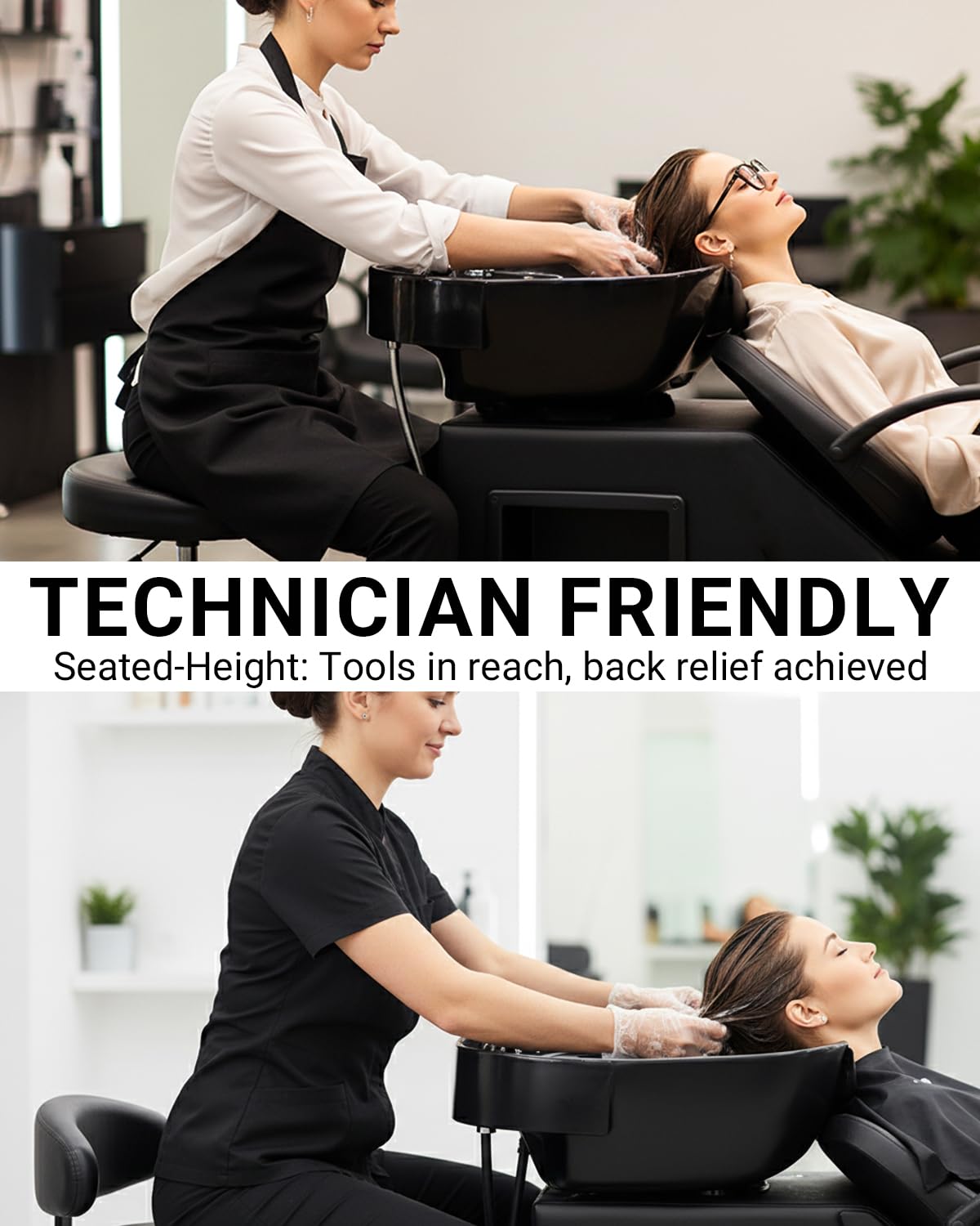 - SPILL-PROOF 8.85″ DEEP BASIN: Effortlessly washes extra-long, thick, or voluminous hair. Keeps floors completely dry – no more messy cleanups! Perfect for all clients, especially those with luxurious locks