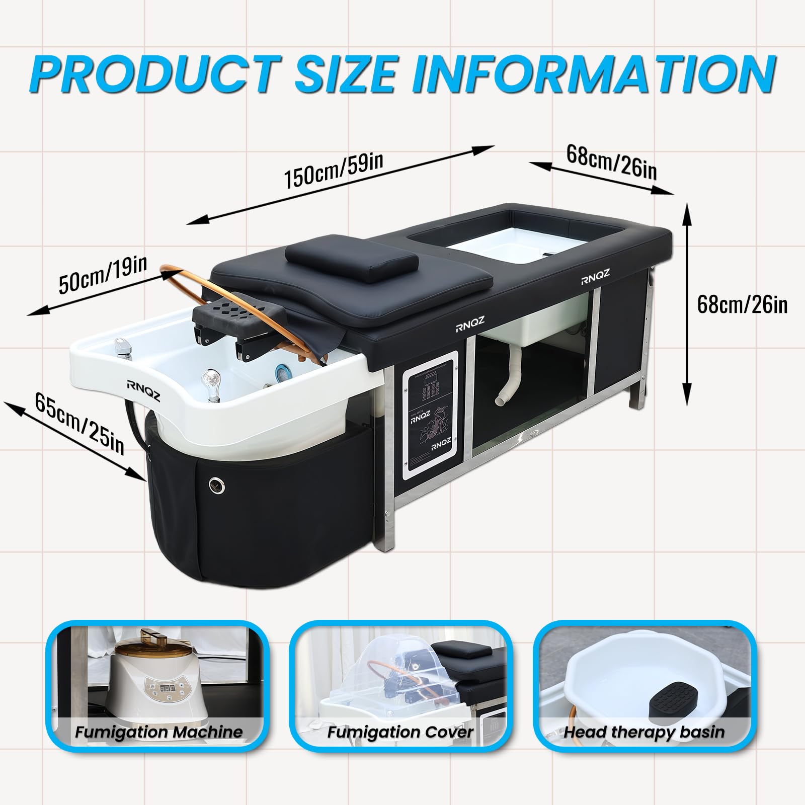 Stationary Head Spa Bed with Water Circulation & Steam Fumigation, Pu Leather Head Spa Hair Salon Equipment with Foot Bath, Head Spa Equipment, Head Spa Massage Table for Spa Beauty Salon(Foot Bath)