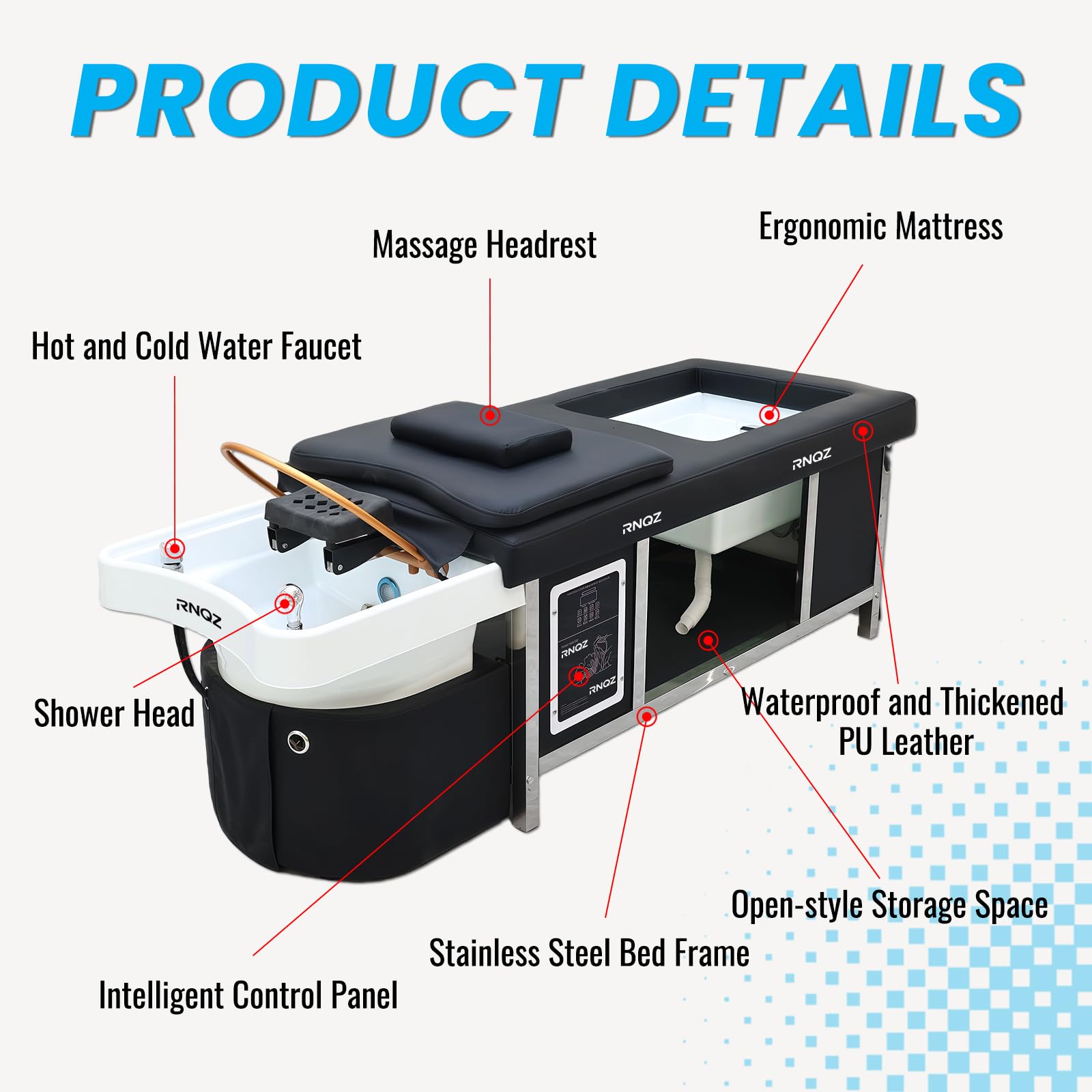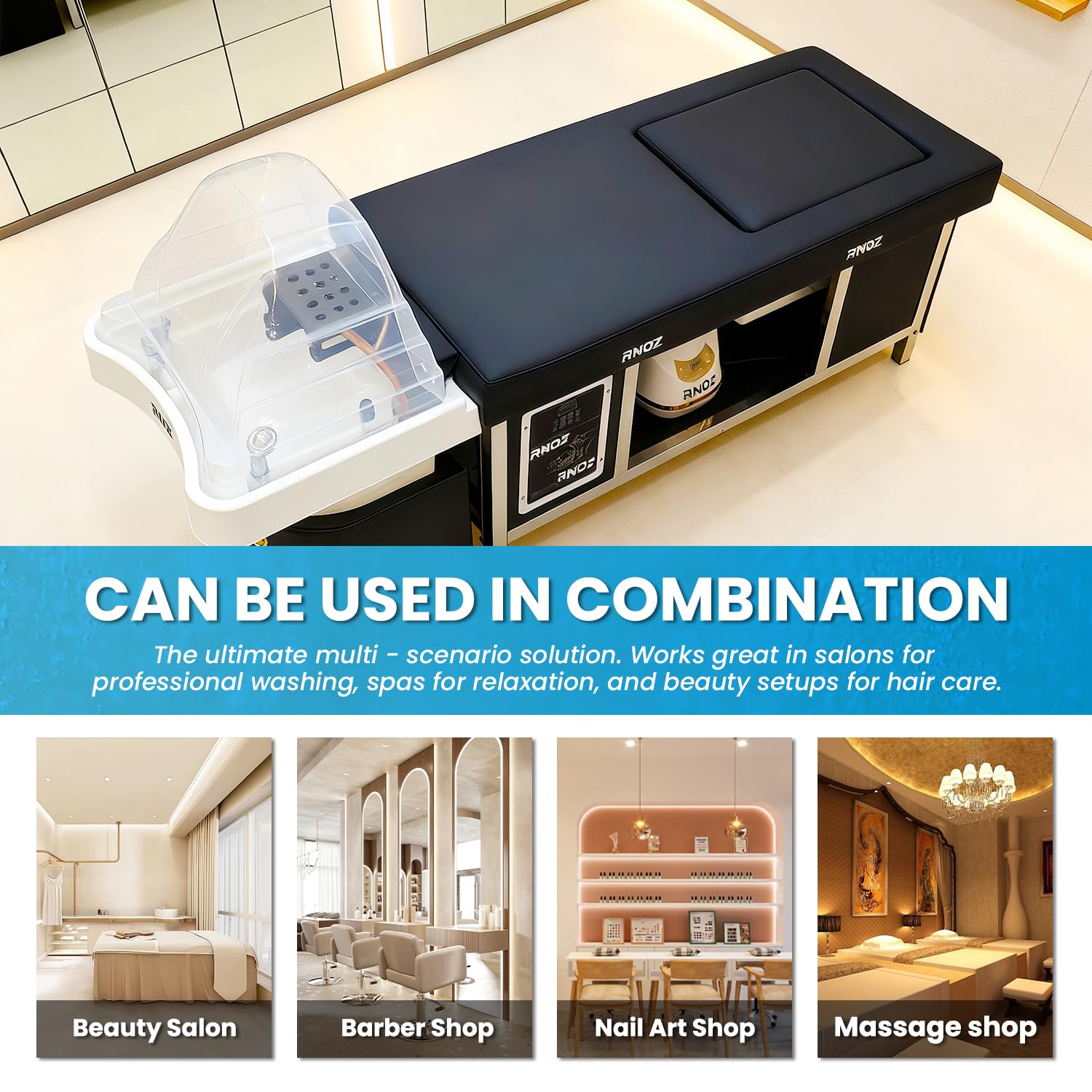 - The Japanese Shampoo Head Spa Bed is Versatile: The head spa equipment plumbed is perfect for beauty salons, massage parlors, barber shops, and luxury spas, making it easy to enhance the customer experience by providing quality massage services. its design transcends commercial spaces and is perfect for home use, turning into a personal oasis of relaxation and rejuvenation.