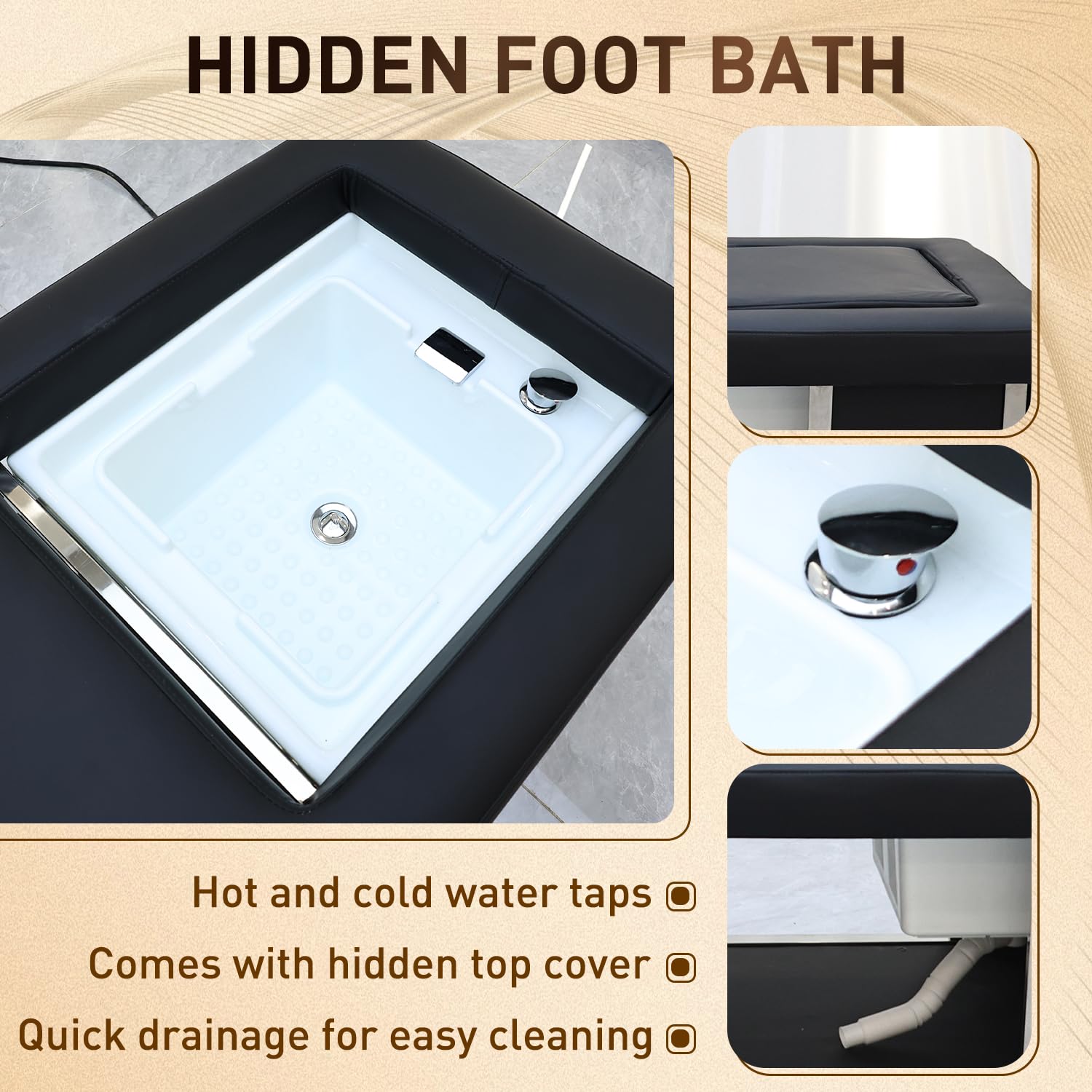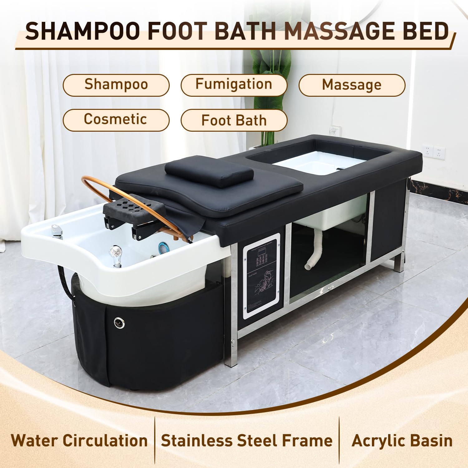 - Multi-functionality: Easily adjustable temperature and time settings make it accessible for both professionals and clients, ensuring a hassle-free and enjoyable operation. Redefine the salon experience by seamlessly transitioning the basin into a massage bed. The included pillow, complete with a face hole, transforms the basin into a versatile space