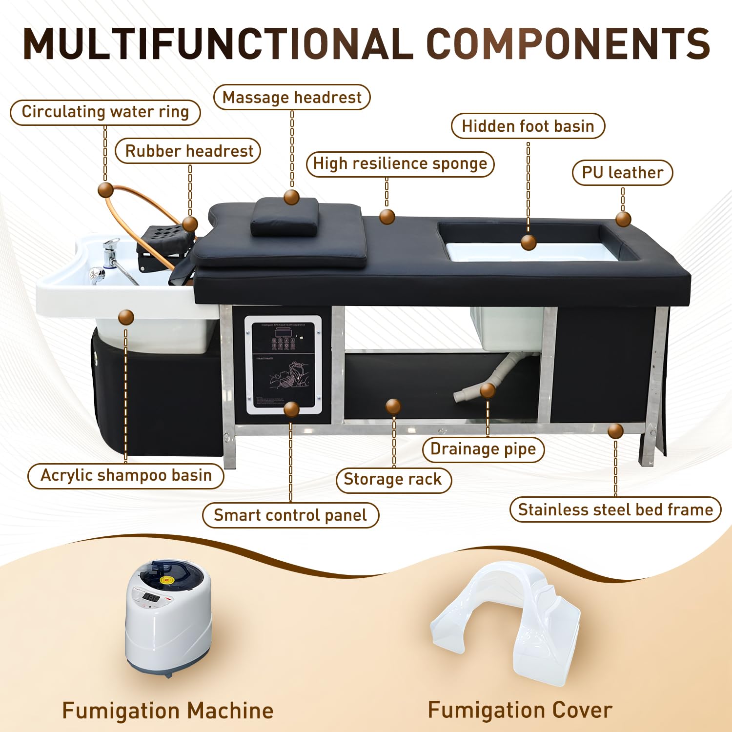 - Various SPA Occasions : This is a professional multifunctional head SPA equipment !Large head spa bed is a professional spa equipment that integrates shampoo, spa, steam therapy, light therapy and hair care. It is very suitable for beauty salons, massage parlors, nail salons, health spas