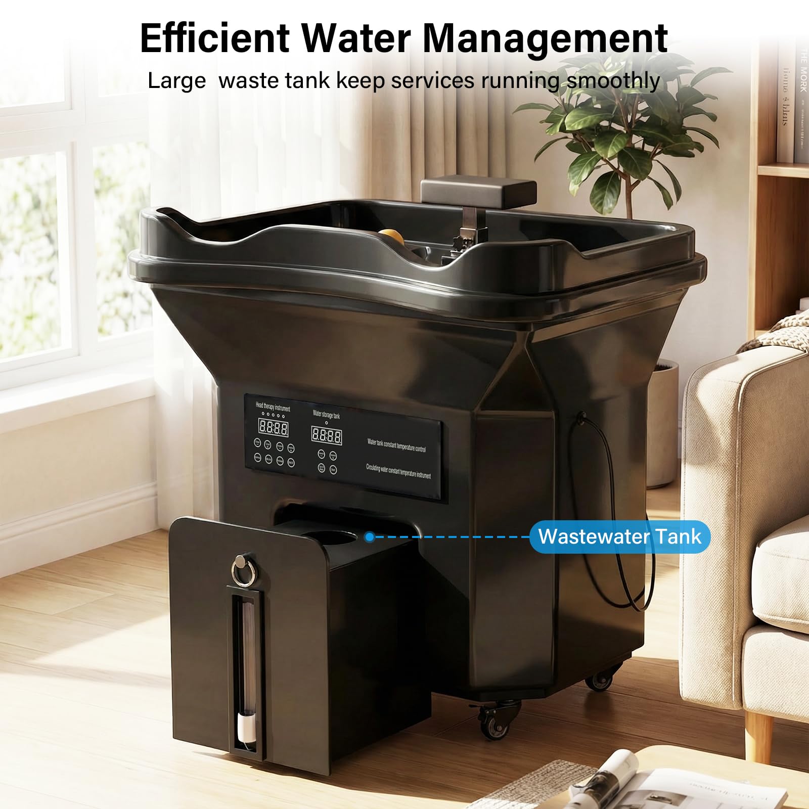 - 【High-Capacity Water Storage】mobile head spa eauipment features a spacious 60L clean water tank and a 30L built-in wastewater tank, providing generous water storage for long, uninterrupted service.