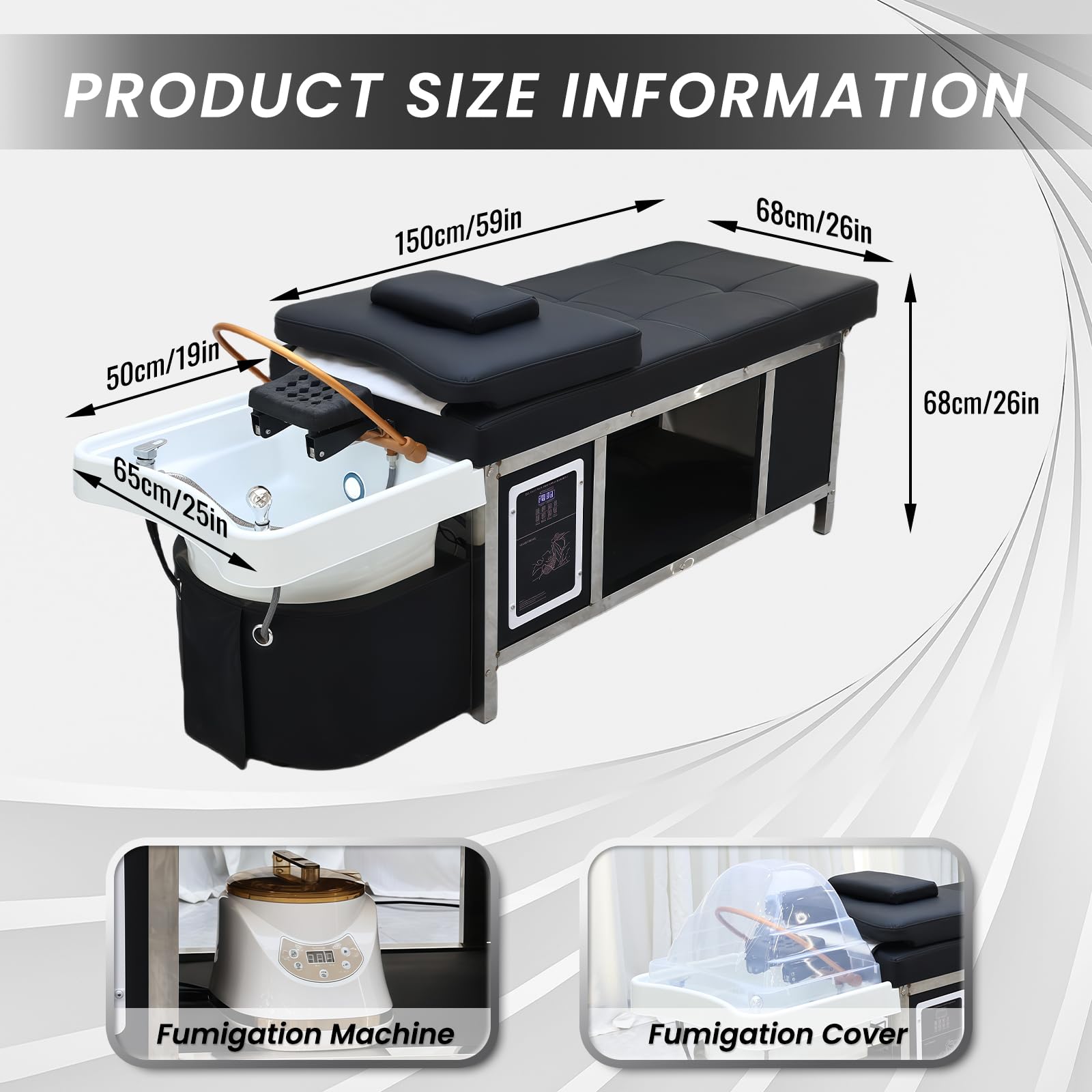 Japanese Head Spa Equipment, Massage Shampoo Bed with Stainless Steel Frame, Supports Water Circulation Fumigation and Light Therapy, Professional Massage Table for Beauty Salon Barber