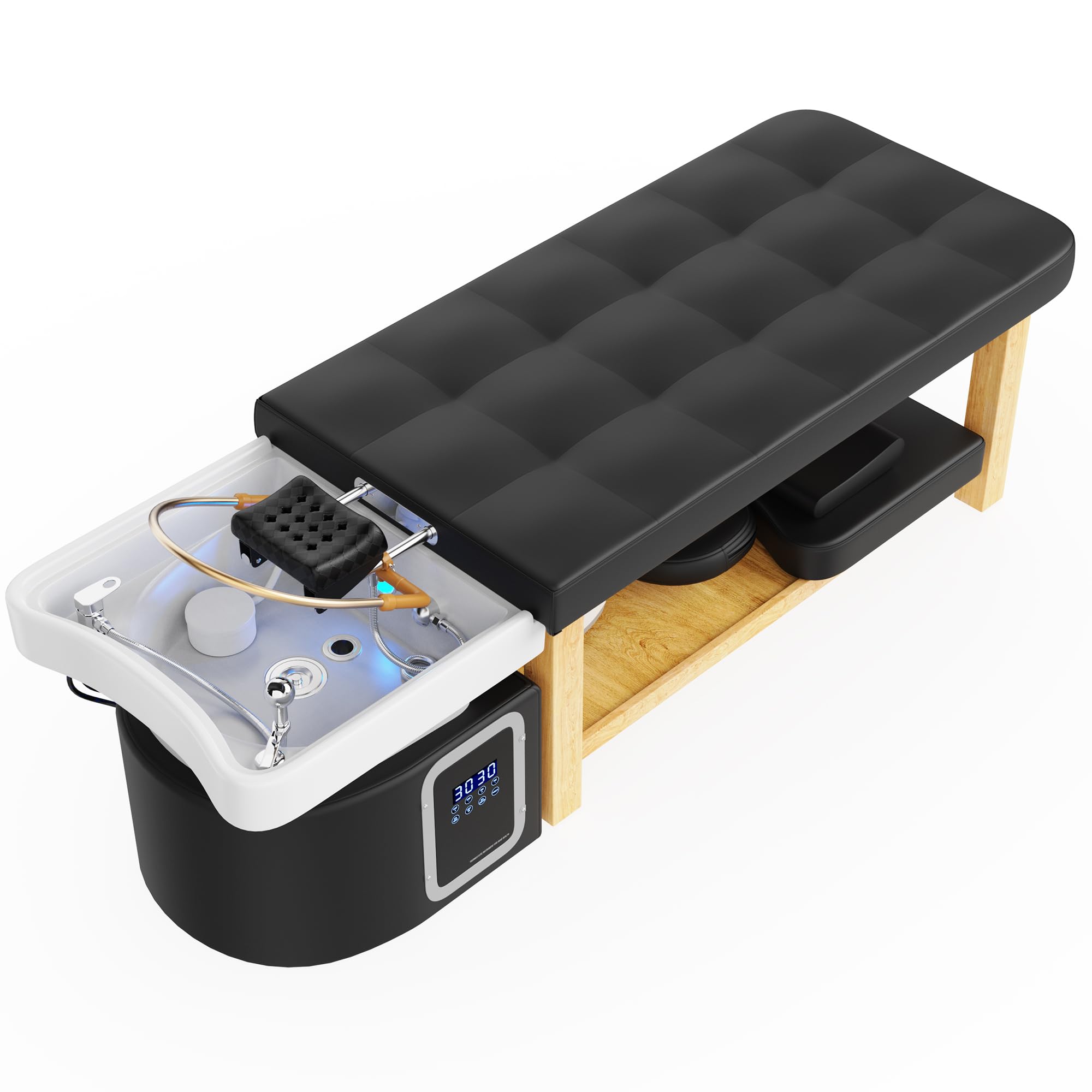 Head Spa Shampoo Bowl Stationary Massage Table Set with Water Cycle & Fumigation Salon Equipment for Beauty Head Spa Physical Therapy Massage Salons, PU Leather Black, Wood Frame