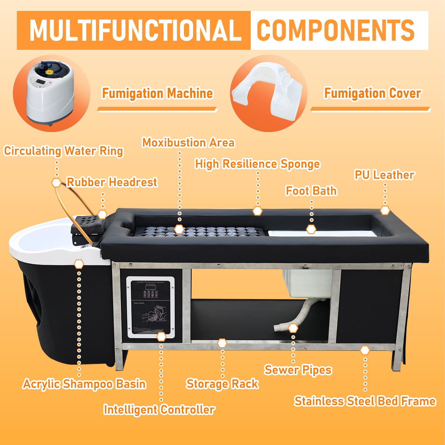 - Various SPA Occasions : This is a professional multifunctional head SPA equipment !Large head spa bed is a professional spa equipment that integrates shampoo, spa, steam therapy, light therapy and hair care. It is very suitable for beauty salons, massage parlors, nail salons, health spas