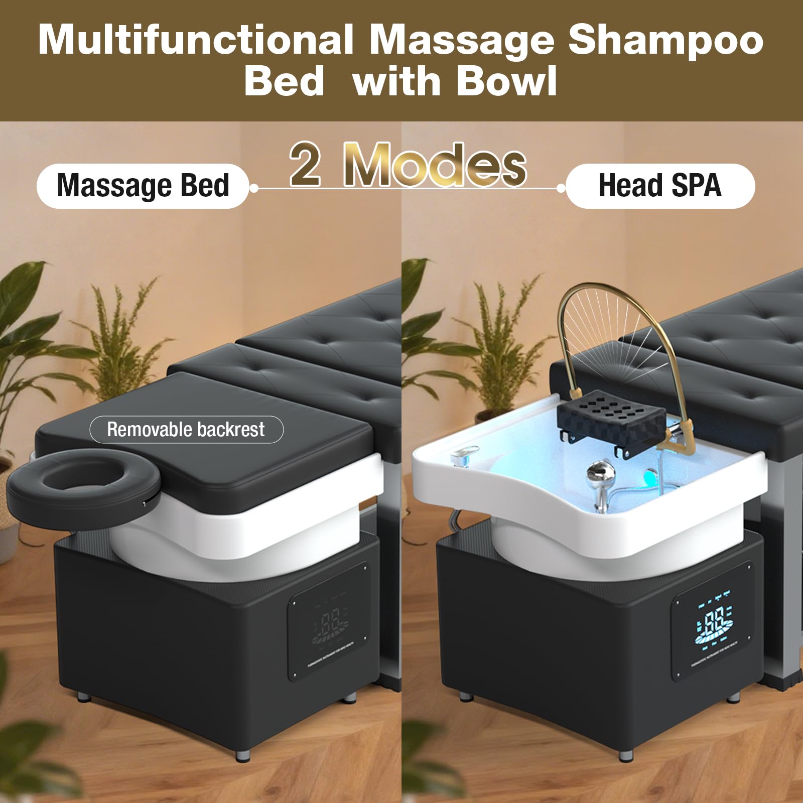 - 【Versatile Commercial Spa Solution】:all-in-one professional head spa bed seamlessly transitions between shampoo bed, hydrotherapy center, and facial massage bed. Engineered for commercial environments including salons, spas, and barbershops, it delivers exceptional performance across multiple treatment modalities