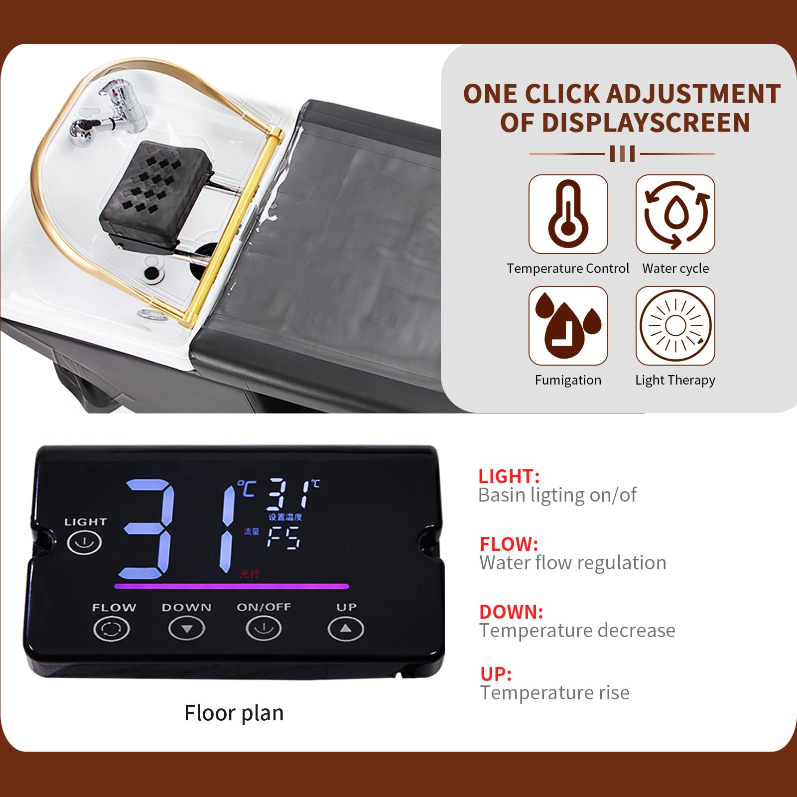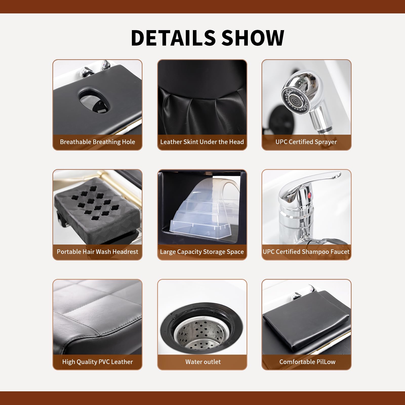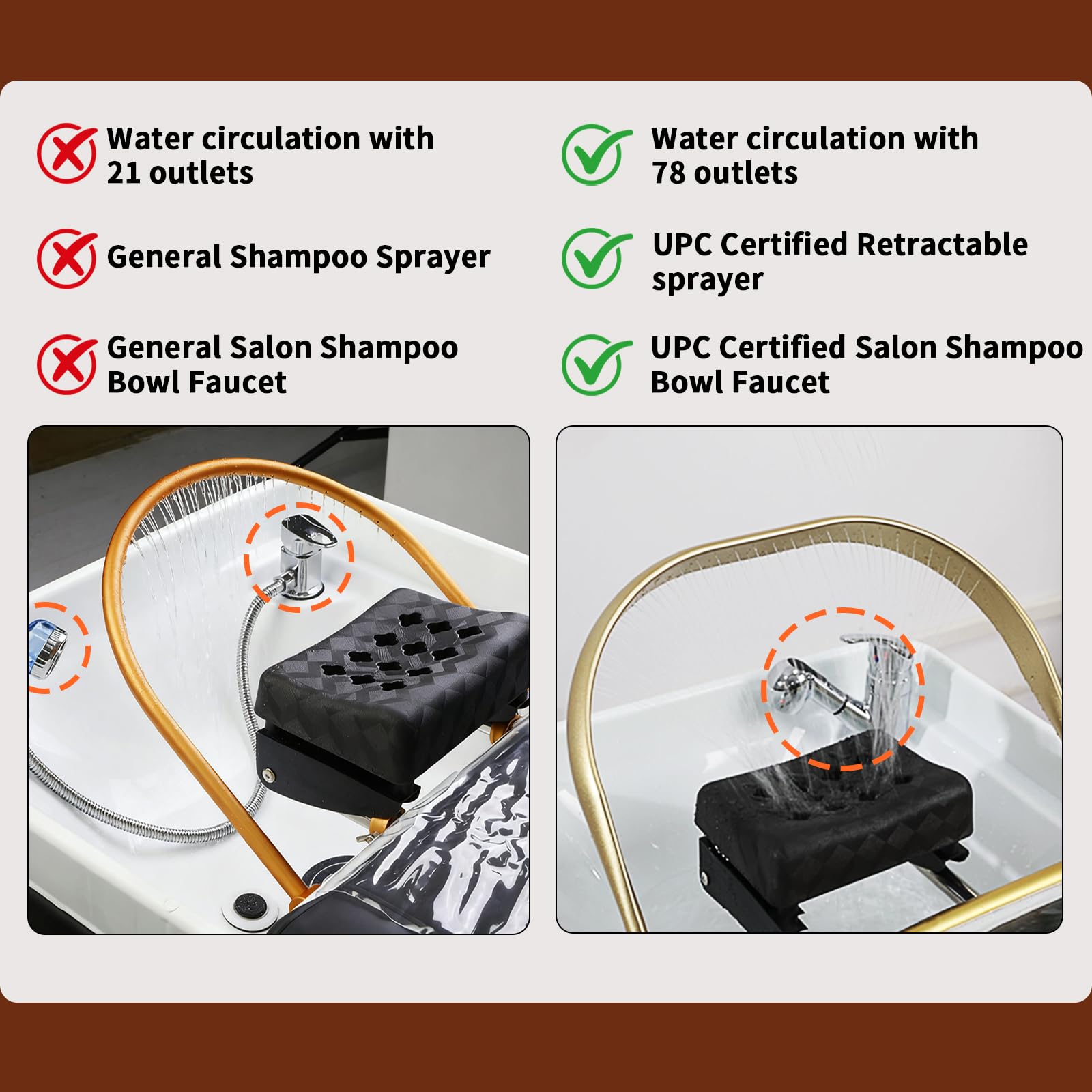 - PROFESSIONAL DESIGN: Water circulation with 78 outlets, UPC certified retractable sprayer, UPC certified salon shampoo bowl faucet, ABS shampoo bowl, smart panel controls, includes steaming hood and machine, hair trap for shampoo sink bowls