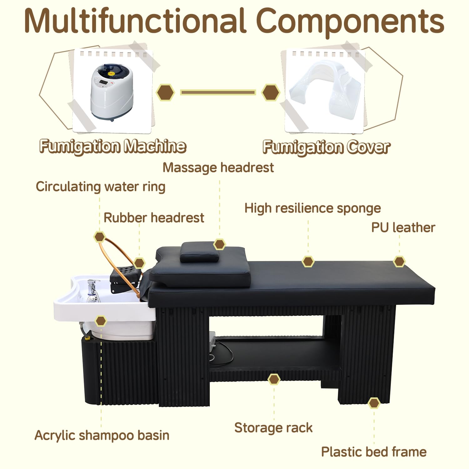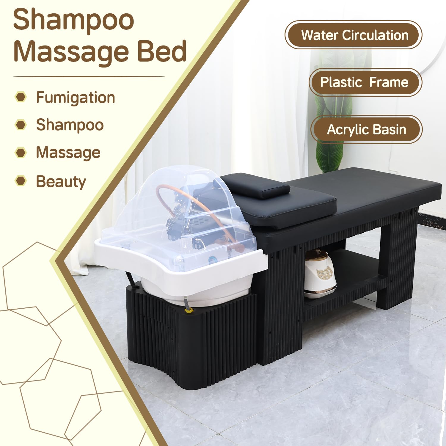- Fumigation Experience: Equipped with a professional fumigator and cap, this head spa bed enhances your salon services. the fumigation cover is used to lock in temperature, preventing temperature loss and providing a comfortable environment for scalp and hair, promote blood circulation, allowing you to relax both physically and mentally