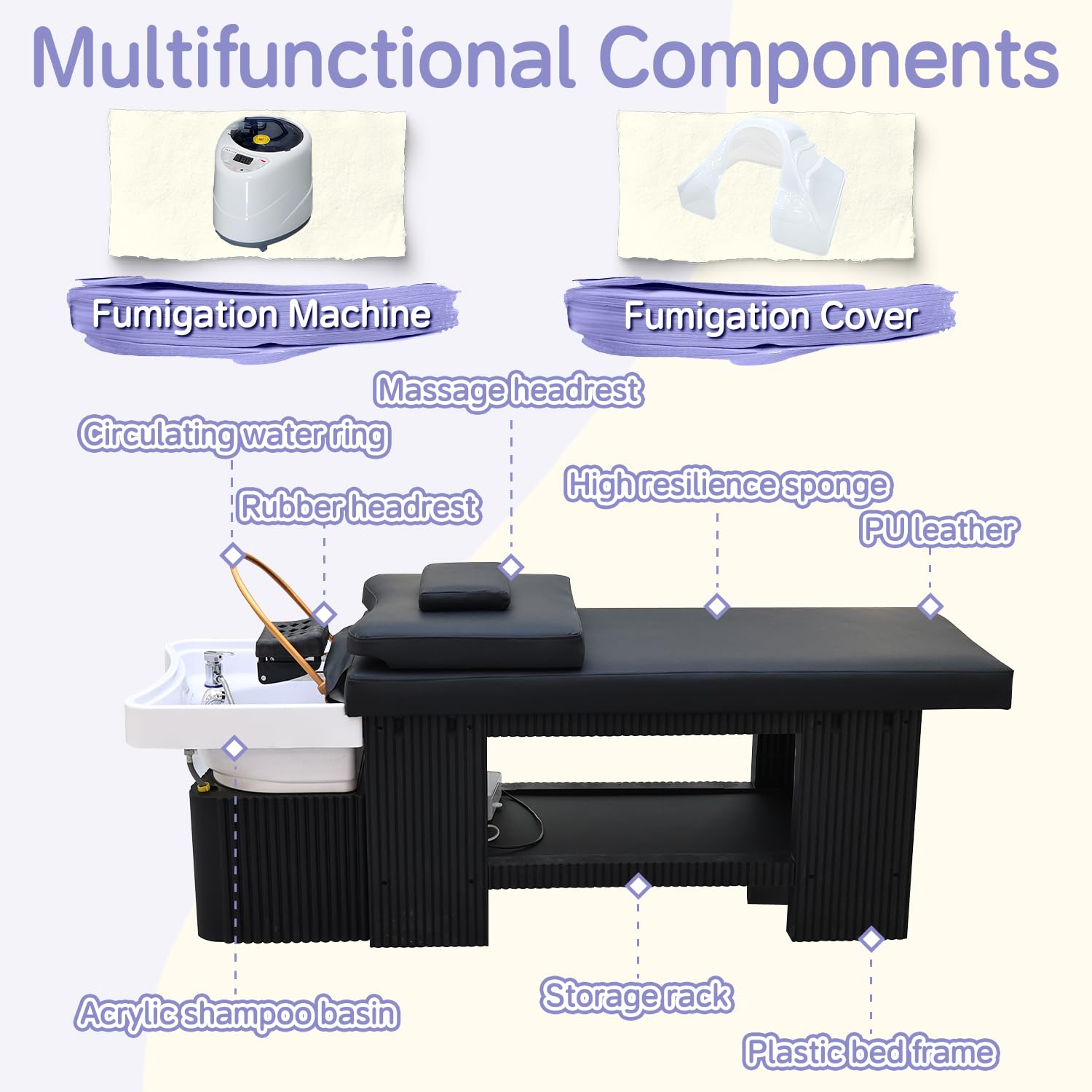 - Ergonomic Design: Massage shampoo Bed conforms to the natural curves of the human body, effectively reducing neck and back pressure and ensuring fatigue-free care even during extended periods. Made from select high-quality, durable materials, the smooth and delicate surface is resistant to ointments and stains,daily cleaning requires only a simple wipe