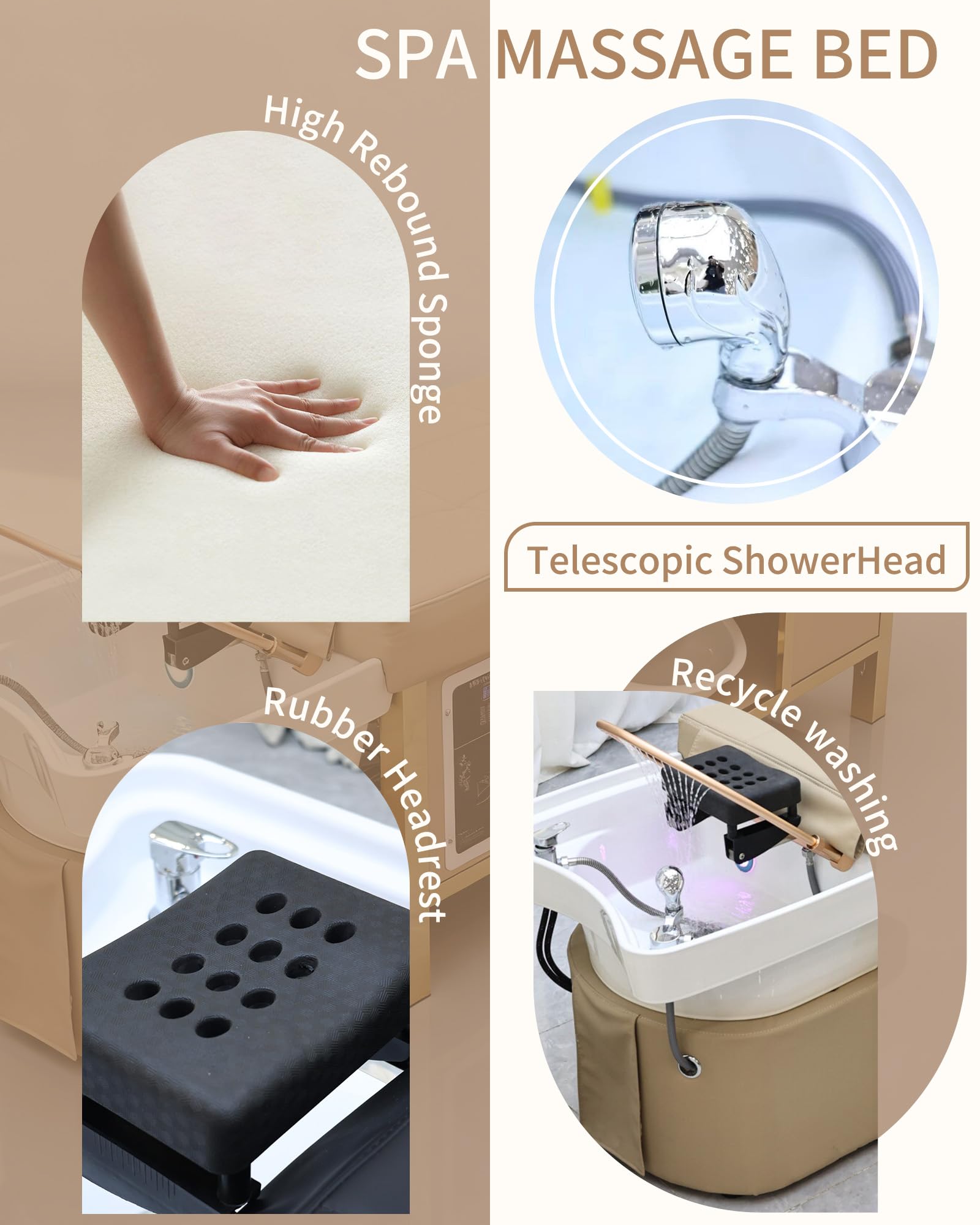 - 【Ergonomic Design for Ultimate Comfort】: This massage bed features a curved shampoo bowl that prevents water splashing and hair tangling, accommodating clients up to 6 ft 3 in height. The body-contouring design supports neck and shoulders for a relaxing posture. As a spa bed, it ensures comfort for all body types, enhancing the head spa experience with its human-centric approach.