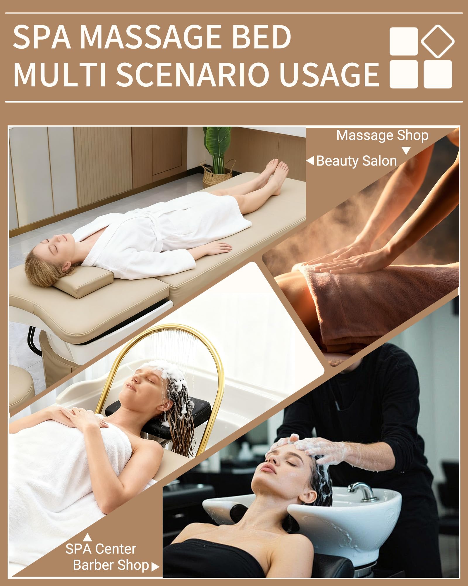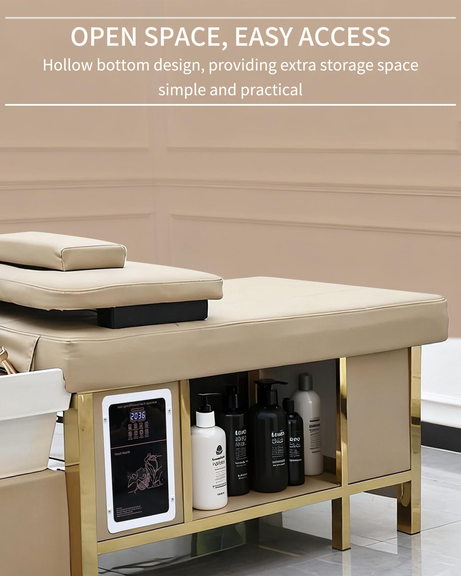 - 【Durable Construction with Smart Storage】: Built from high-quality stainless steel, acrylic, waterproof PU leather, and high-density sponge, this shampoo bed is easy to clean and long-lasting. The built-in storage compartment organizes towels and tools, saving space. Perfect as a massage bed or salon station, it combines durability with practicality for daily use.