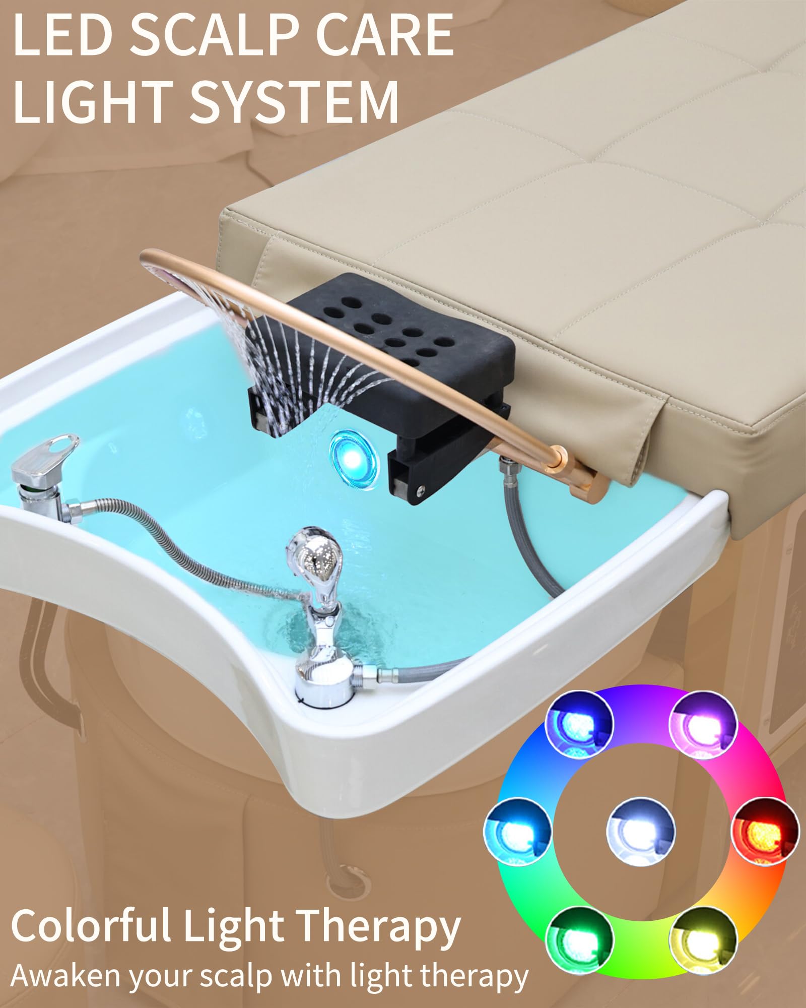 - 【All-in-One Head Spa Experience】: Our Massage Shampoo Bed integrates hair care massage and head/neck fumigation for a complete head spa treatment, saving time and space while creating a relaxing atmosphere with Colorful LED lights. Ideal for head spa beds and salon stations, this versatile equipment enhances client relaxation in barbershops, spas, and wellness resorts, promoting stress relief and efficiency. Designed as professional head spa equipment, it elevates your service quality and business growth.