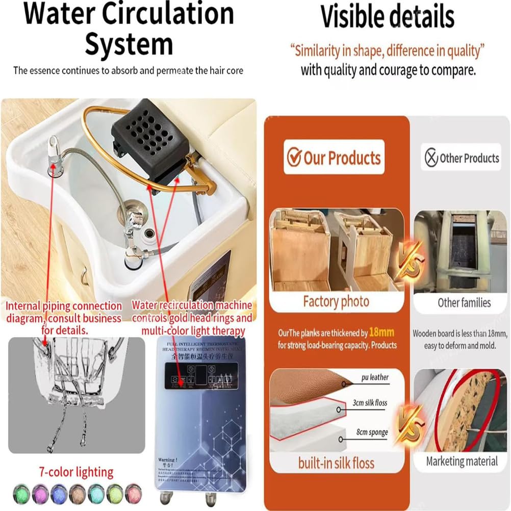 - [Comfort Experience]: Shampoo bed features a high-density memory foam mattress that expertly contours to your body’s natural curves. Elevate your salon or spa with the versatile head spa that integrates hair care massage, head/facial fumigation, comprehensive body care into one compact unit. The spa bed is perfect for beauty salons, massage parlours, barbershops and luxury spas, making it easy to enhance customer experience, and even perfect for home use