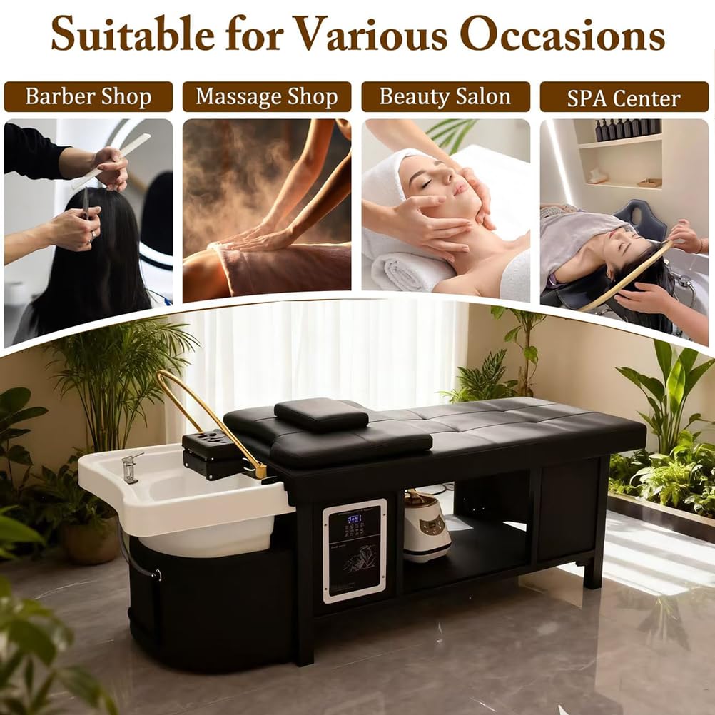 - THIS SHAMPOO BED IS VERSATILE: it is perfect for beauty salons, massage parlours, barbershops and luxury spas, making it easy to enhance the customer experience by providing quality massage services. Its design transcends commercial spaces, making it ideal for home use, which can be transformed into a personal oasis of relaxation and rejuvenation. Whether professional or personal, this shampoo bed consistently provides high-quality massage services suitable for all occasions.