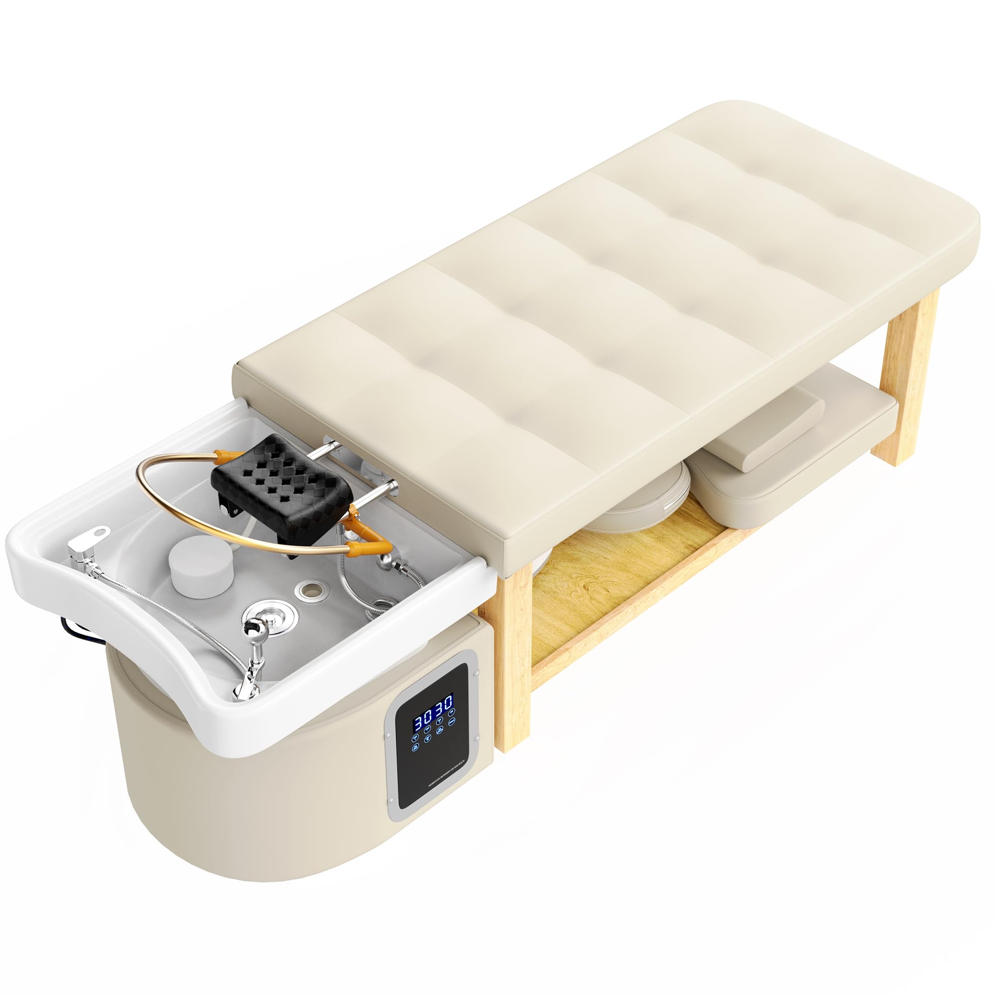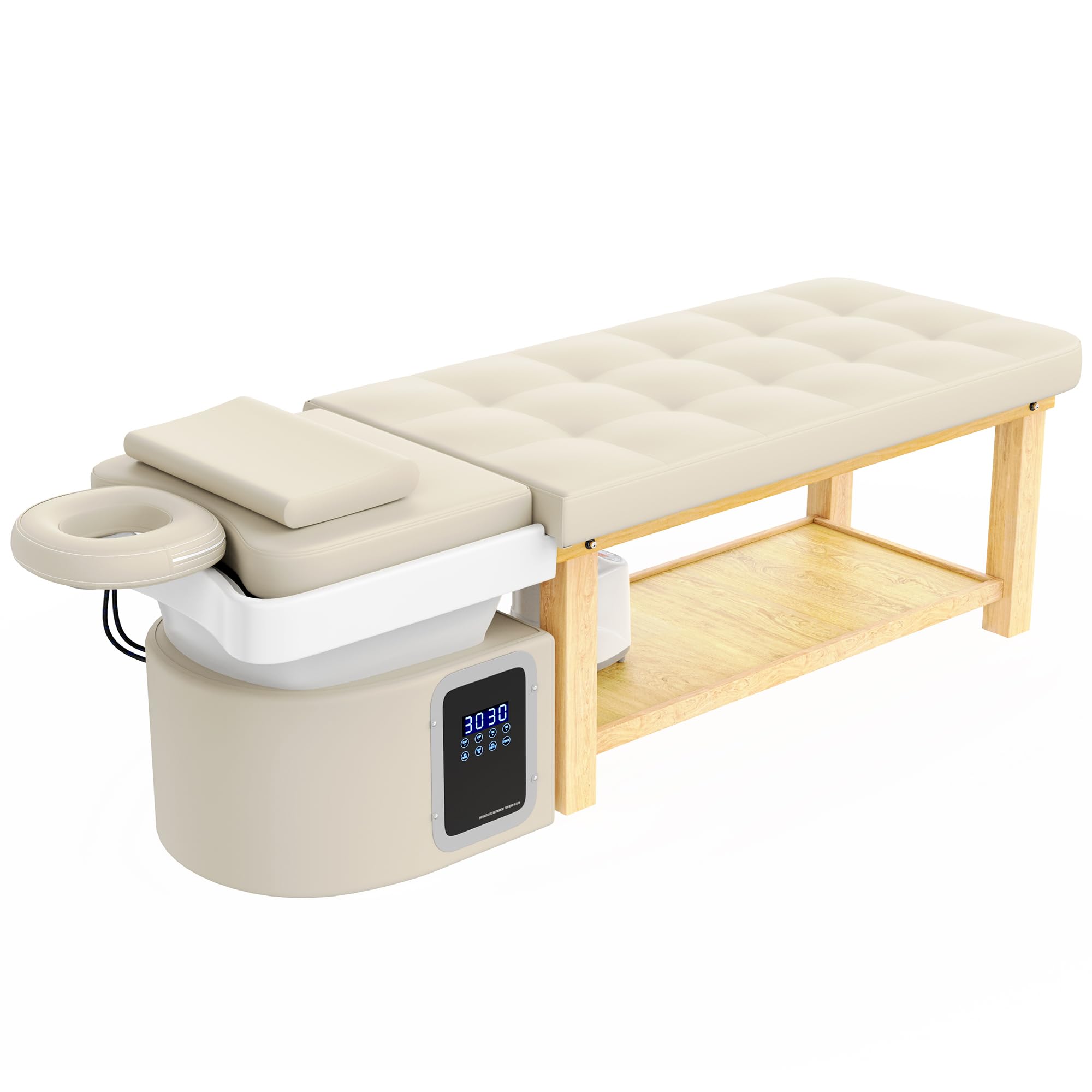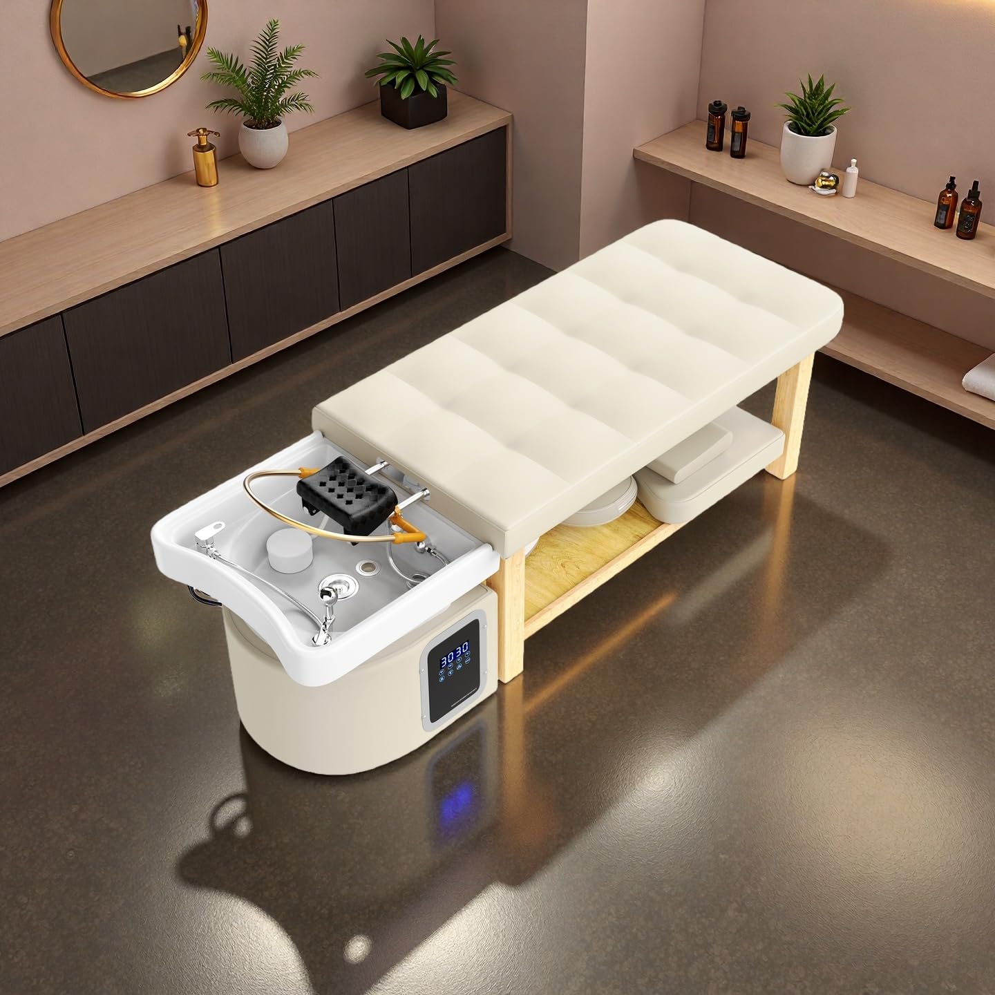 - Professional U-Shaped Water Circulation System –This head spa bed features a 21-hole U-shaped shampoo basin that delivers an even, waterfall-like rinse, ideal for scalp treatment and hair washing stations in salons and barbershops. The continuous water circulation system provides a soothing experience for clients while helping stylists work more efficientl