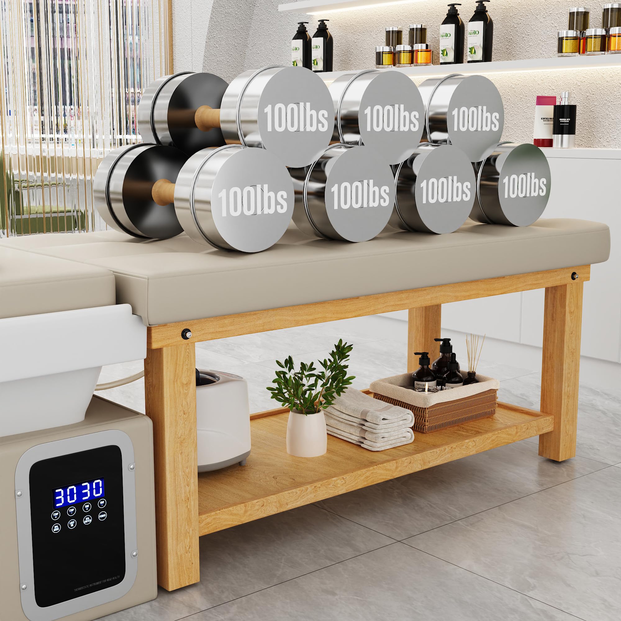 - Multi-Functional Design with Large Storage Space – This professional massage and shampoo bed includes a spacious under-bed storage area to organize towels, oils, and accessories neatly. Adaptable fittings make it compatible with various spa and salon equipment setups, ideal for hair washing, scalp spa, facial care, or massage therapy services