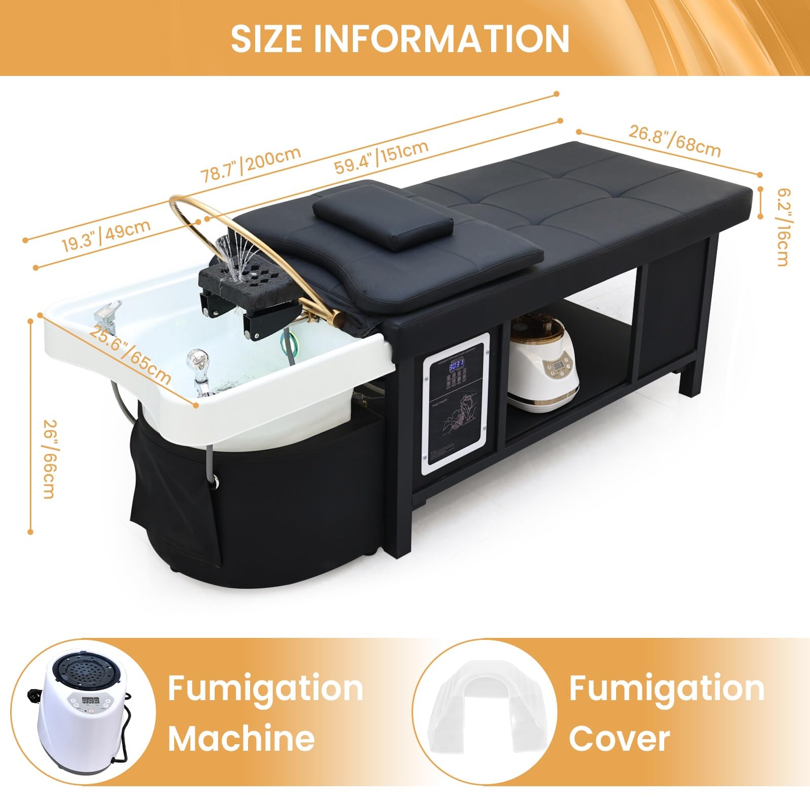 Massage Table with Shampoo Bowl Massage Bed, Head Spa Equipment with Water Cycle & Fumigation Stationary Head Spa Bed for Beauty Head Physical Salons Esthetician Treatment Wellness Resort, Black