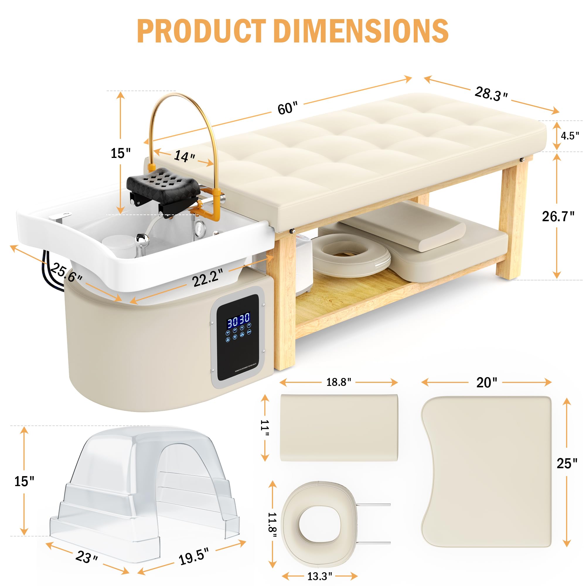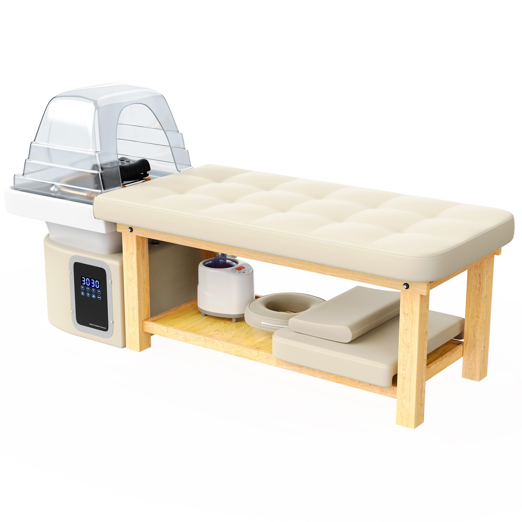 Heavy Duty Head Spa Bed – Headspa Equipment with Water Cycle & Fumigation Salon Equipment, Stationary Massage Table with U Shaped Head Basin and Wood Frame for Beauty Salon