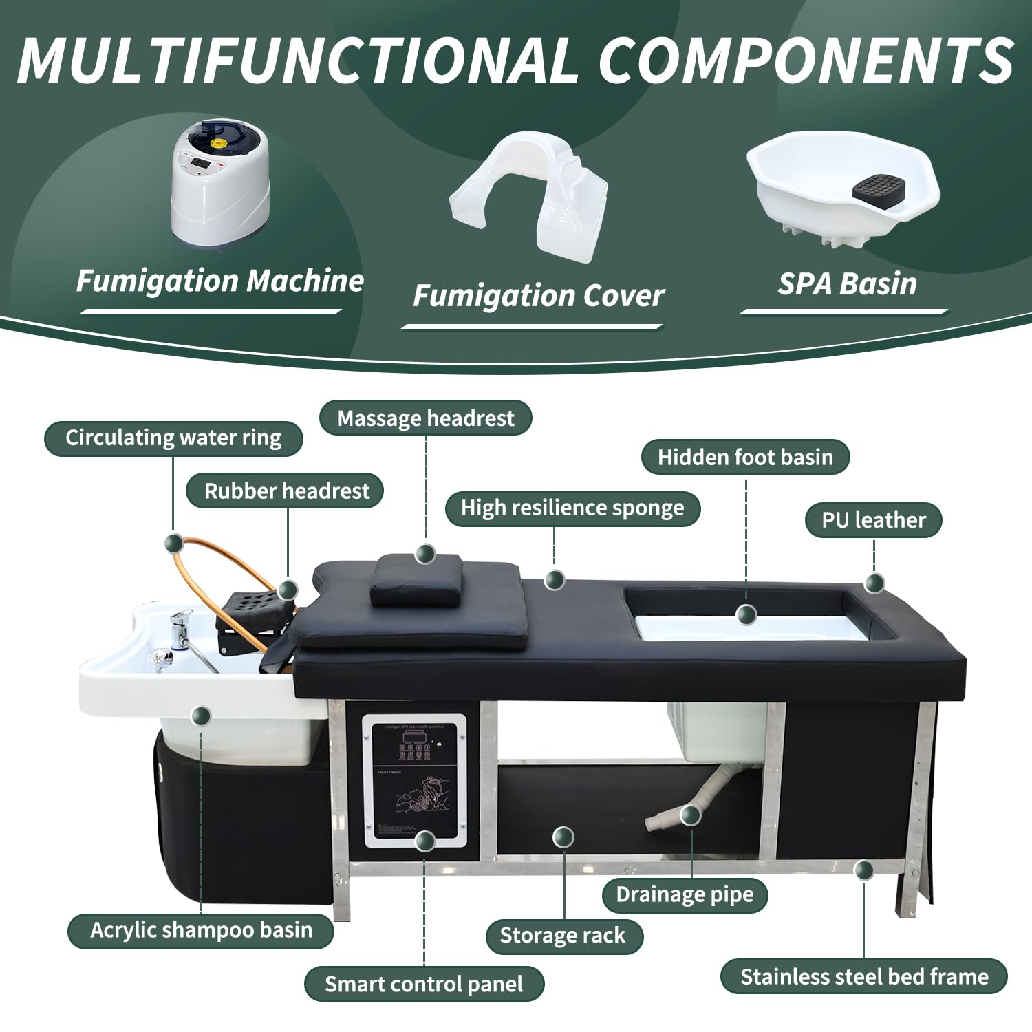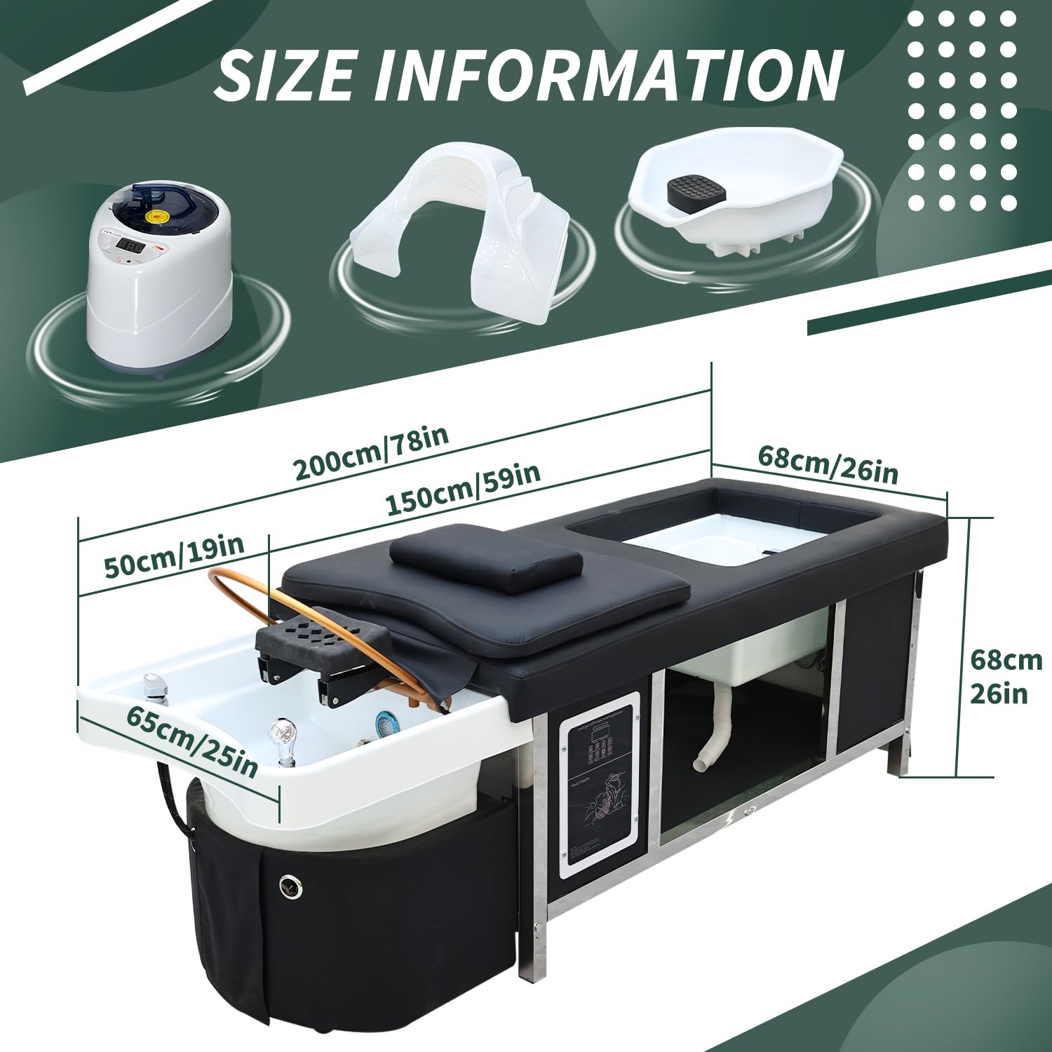 - Adjustable Time & Temperature Control: Equipped with intelligent time and temperature control settings, allowing you to fully customize each head spa session to meet client preferences. Maintain optimal water warmth and duration for a consistent and comfortable scalp massage experience.