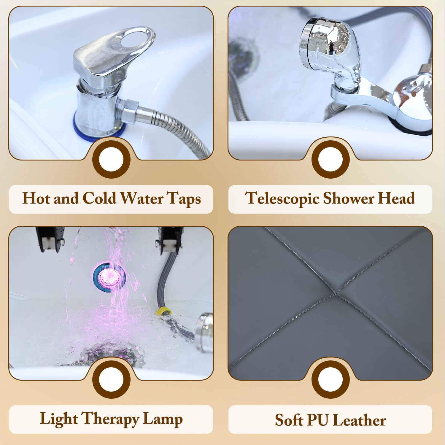 - LED Light Therapy for Scalp & Hair Health:Boost hair vitality with 4-color LED light therapy (blue, purple, green, cyan). Each light targets specific concerns: scalp detox, hair growth stimulation, stress relief, and oil regulation. A spa-grade add-on to elevate standard shampoo services into rejuvenating holistic treatments.