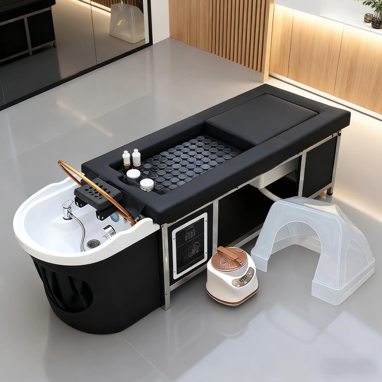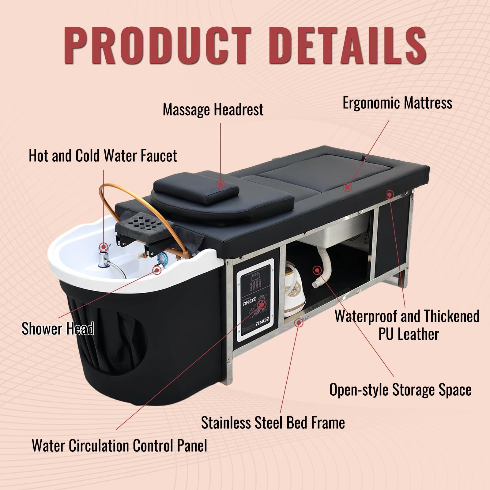 - The Japanese Shampoo Head Spa Bed is Versatile: The head spa equipment plumbed is perfect for beauty salons, massage parlors, barber shops, and luxury spas, making it easy to enhance the customer experience by providing quality massage services. its design transcends commercial spaces and is perfect for home use, turning into a personal oasis of relaxation and rejuvenation.