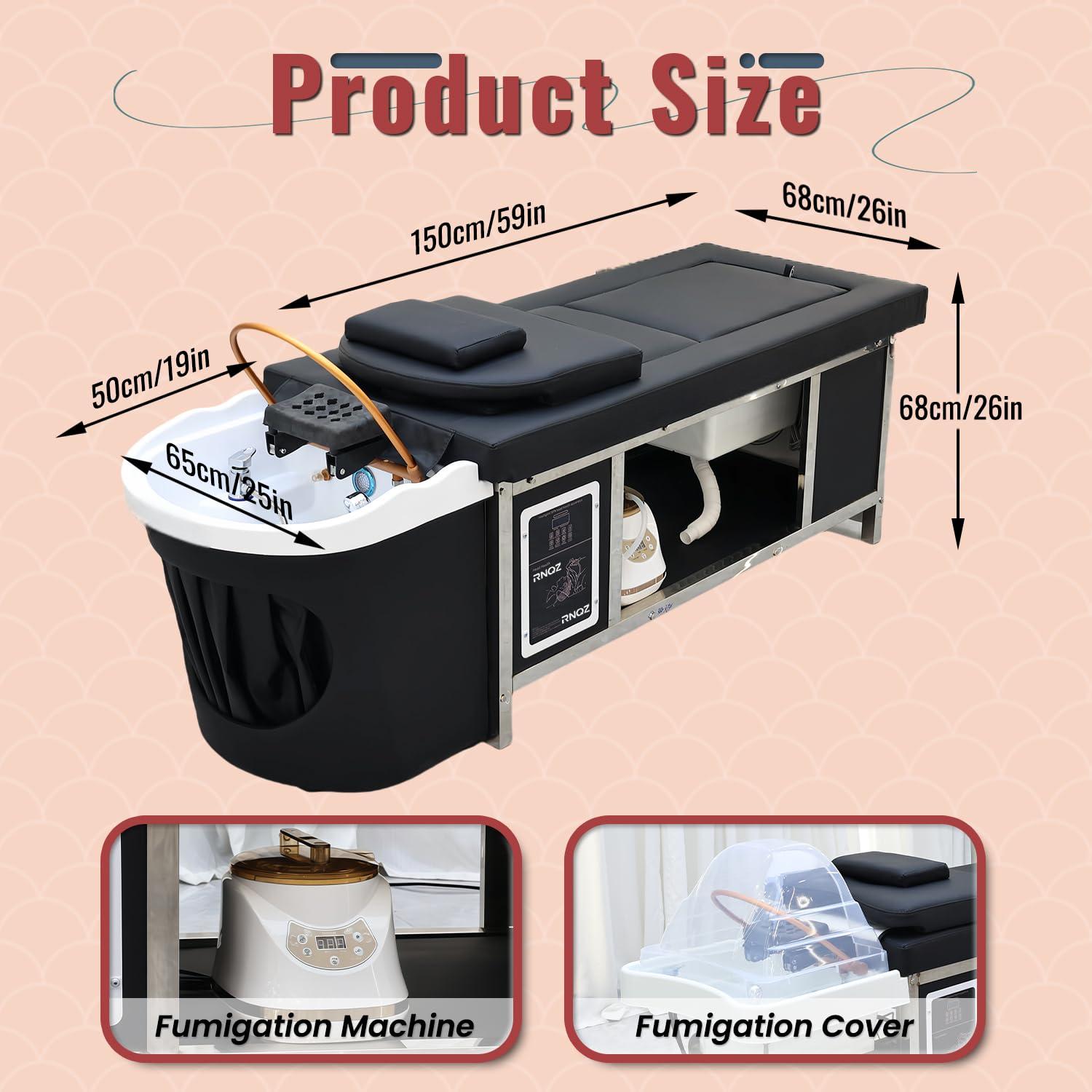 - Steam Fumigation System of The Japanese Head Spa Bed: Our professional head spa equipment is equipped with a fumigator and a fumigation hood, the heavy fog fumigation is combined with hydrotherapy phototherapy to provide comprehensive hydrotherapy on the scalp. the fumigation cover is used to lock in temperature, preventing temperature loss and providing a comfortable environment for scalp and hair, promote blood circulation, allowing you to relax both physically and mentally.
