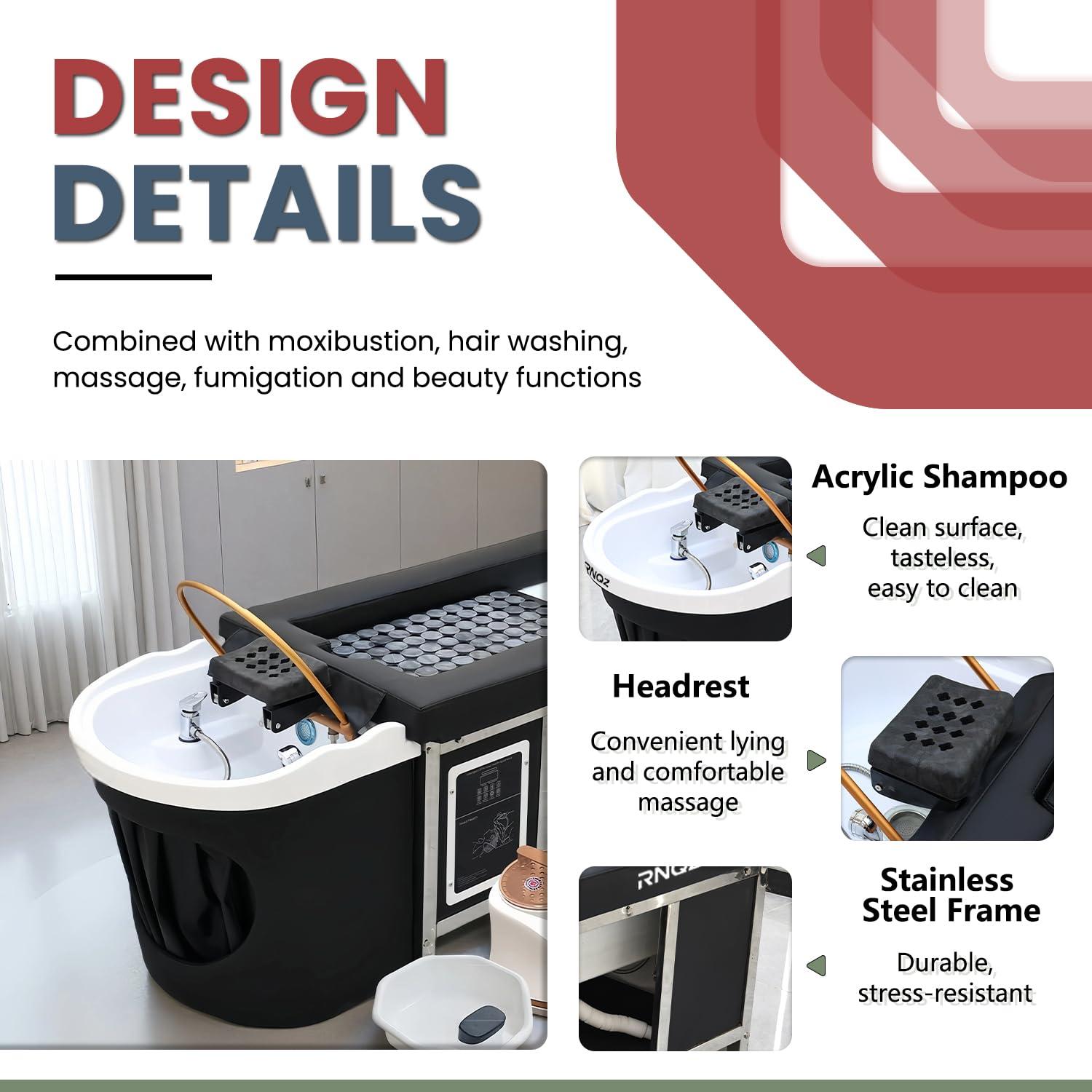 Professional Head Spa Equipment with Steaming & Water Circulation, Japanese Headspa Bed with Back Moxibustion & Foot Bath, Head Spa Massage Shampoo Bed for Salons Spa Beauty Barber(Moxibustion)