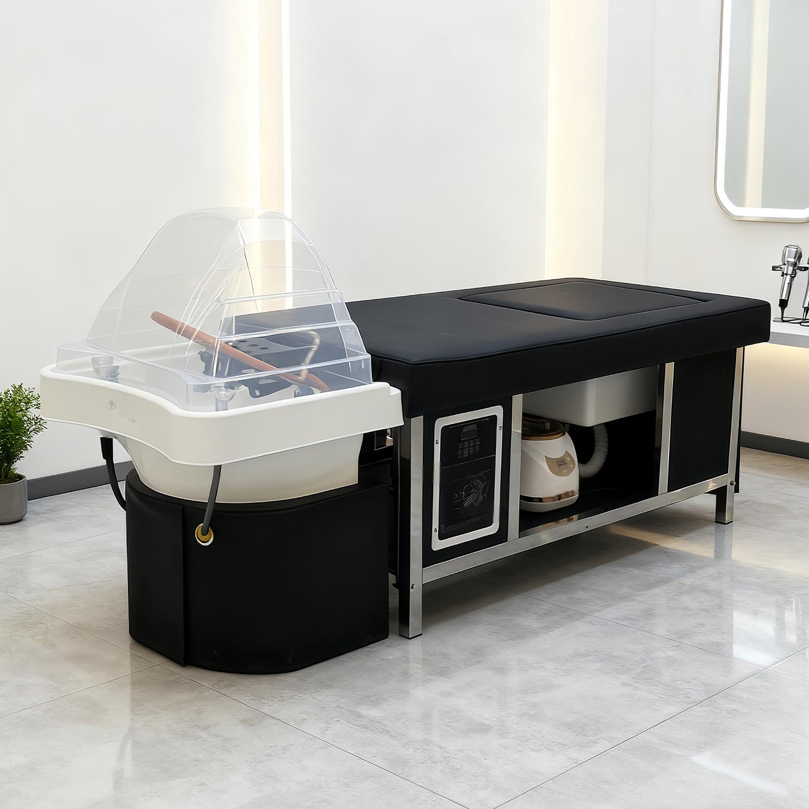 Stationary Head Spa Bed with Water Circulation & Steam Fumigation, Pu Leather Head Spa Hair Salon Equipment with Foot Bath, Head Spa Equipment, Head Spa Massage Table for Spa Beauty Salon(Foot Bath)