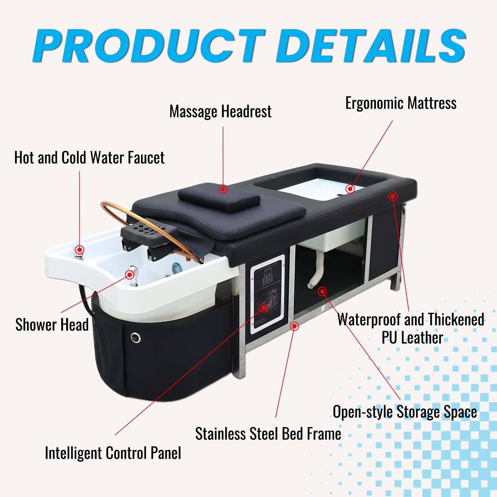 - The Japanese Shampoo Head Spa Bed is Versatile: The head spa equipment plumbed is perfect for beauty salons, massage parlors, barber shops, and luxury spas, making it easy to enhance the customer experience by providing quality massage services. its design transcends commercial spaces and is perfect for home use, turning into a personal oasis of relaxation and rejuvenation.