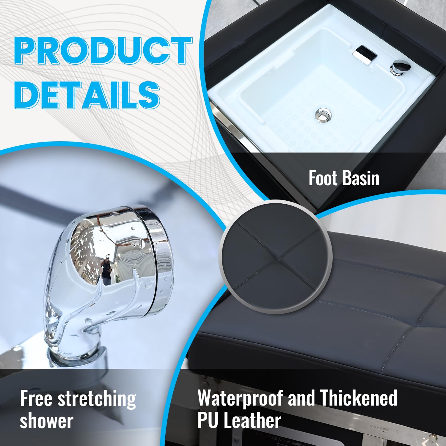 - High Quality Material Selection: This japanese head spa equipment is made of stainless steel frame/plastic frame, acrylic shampoo basin and PU leather, with a stable structure and excellent load-bearing capacity. The smooth acrylic shampoo basin of head spa equipment is easy to clean and maintain, while the wear-resistant PU leather and high-density sponge ensure the ultimate comfort during use
