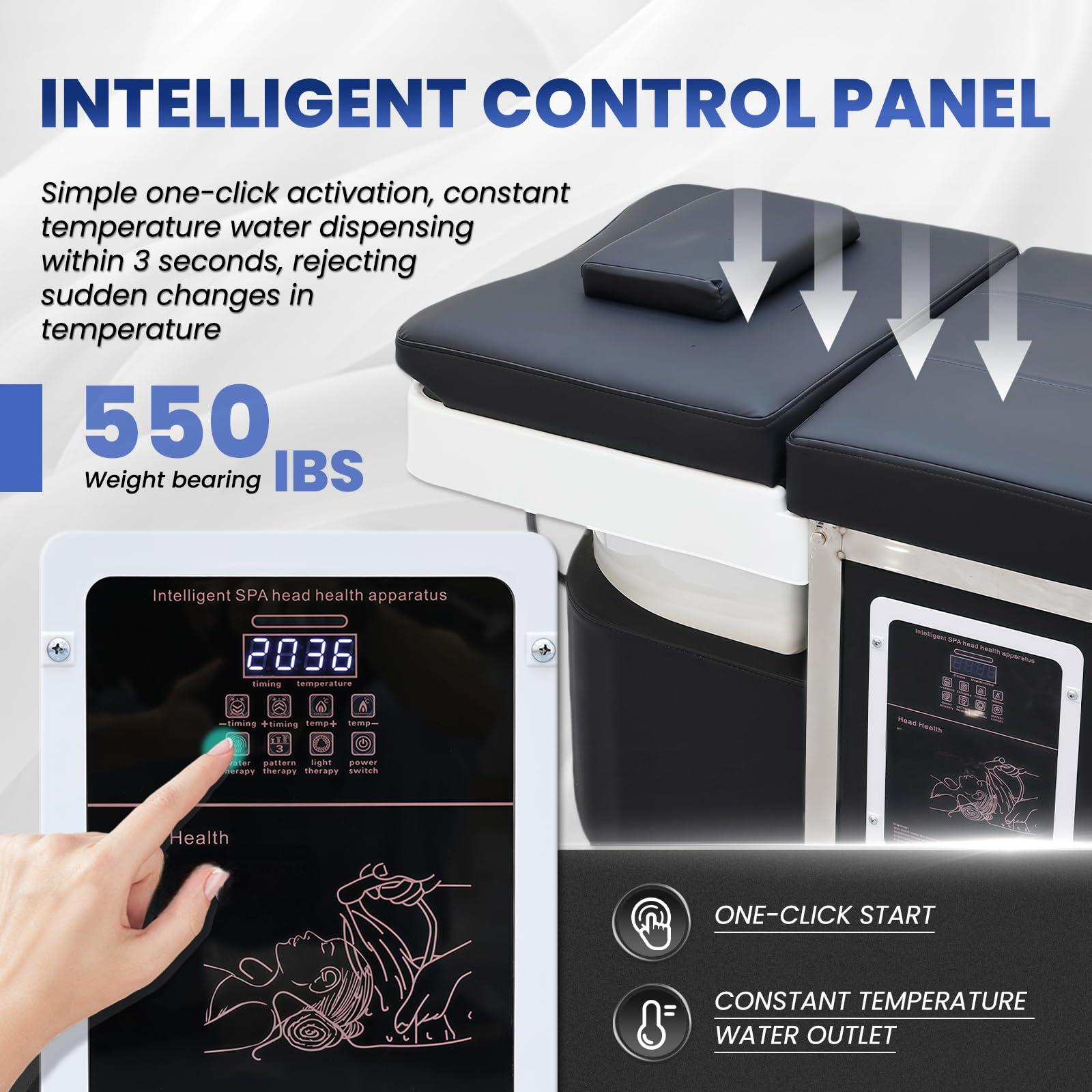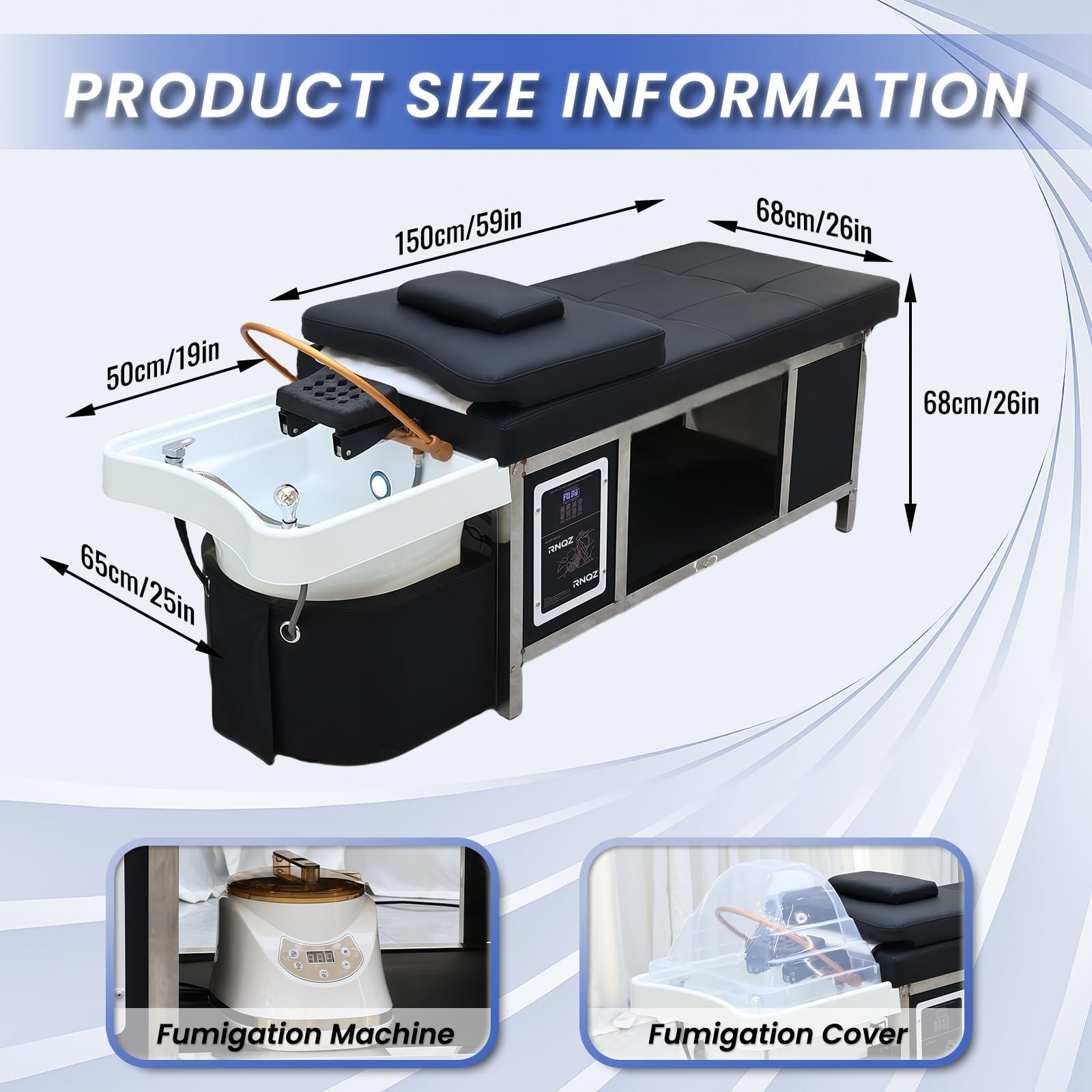- Steam Fumigation System of The Japanese Head Spa Bed: Our professional head spa equipment is equipped with a fumigator and a fumigation hood, the heavy fog fumigation is combined with hydrotherapy phototherapy to provide comprehensive hydrotherapy on the scalp. the fumigation cover is used to lock in temperature, preventing temperature loss and providing a comfortable environment for scalp and hair, promote blood circulation, allowing you to relax both physically and mentally.